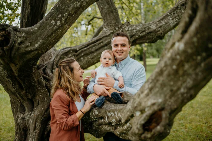 Das Shooting war geprägt von einem gemütlichen Spaziergang zu verschiedenen Fotospots, die perfekt in die natürliche Umgebung des Parks integriert waren. Das frische Grün, bunte Blumen und warme Sonnenstrahlen bildeten die ideale Kulisse für die liebevollen Aufnahmen von Franzi, Ilmer und ihrem kleinen Sonnenschein.