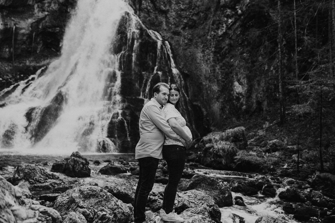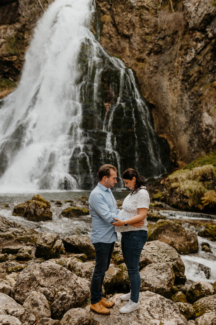 Das rauschende Wasser des Gollinger Wasserfalls bildete eine natürliche Symphonie. Während die werdenden Eltern sich vor der Kamera positionierten, um die einzigartige Vorfreude auf ihr kommendes Familienglück einzufangen. Als Fotograf in Salzburg ist es stets mein Ziel, nicht nur visuelle Erinnerungen zu schaffen, sondern auch die Emotionen und die Liebe, die in diesen besonderen Momenten liegen, zu vermitteln.