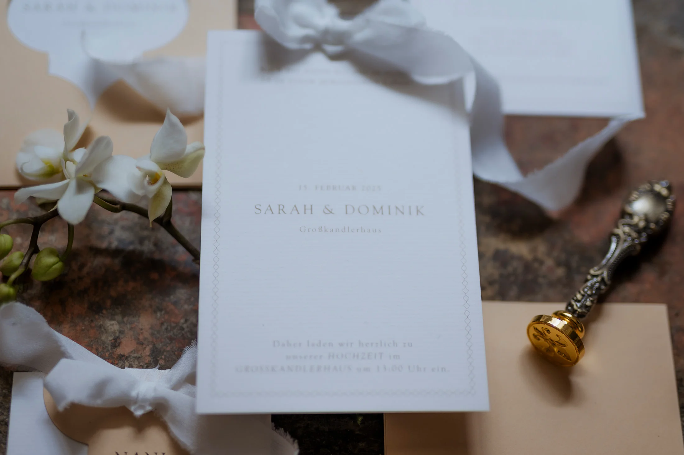 Die Hochzeit von Sarah und Dominik wurde mit viel Liebe zum Detail gestaltet. Regionale Dienstleister sorgten für eine harmonische und stilvolle Umsetzung: