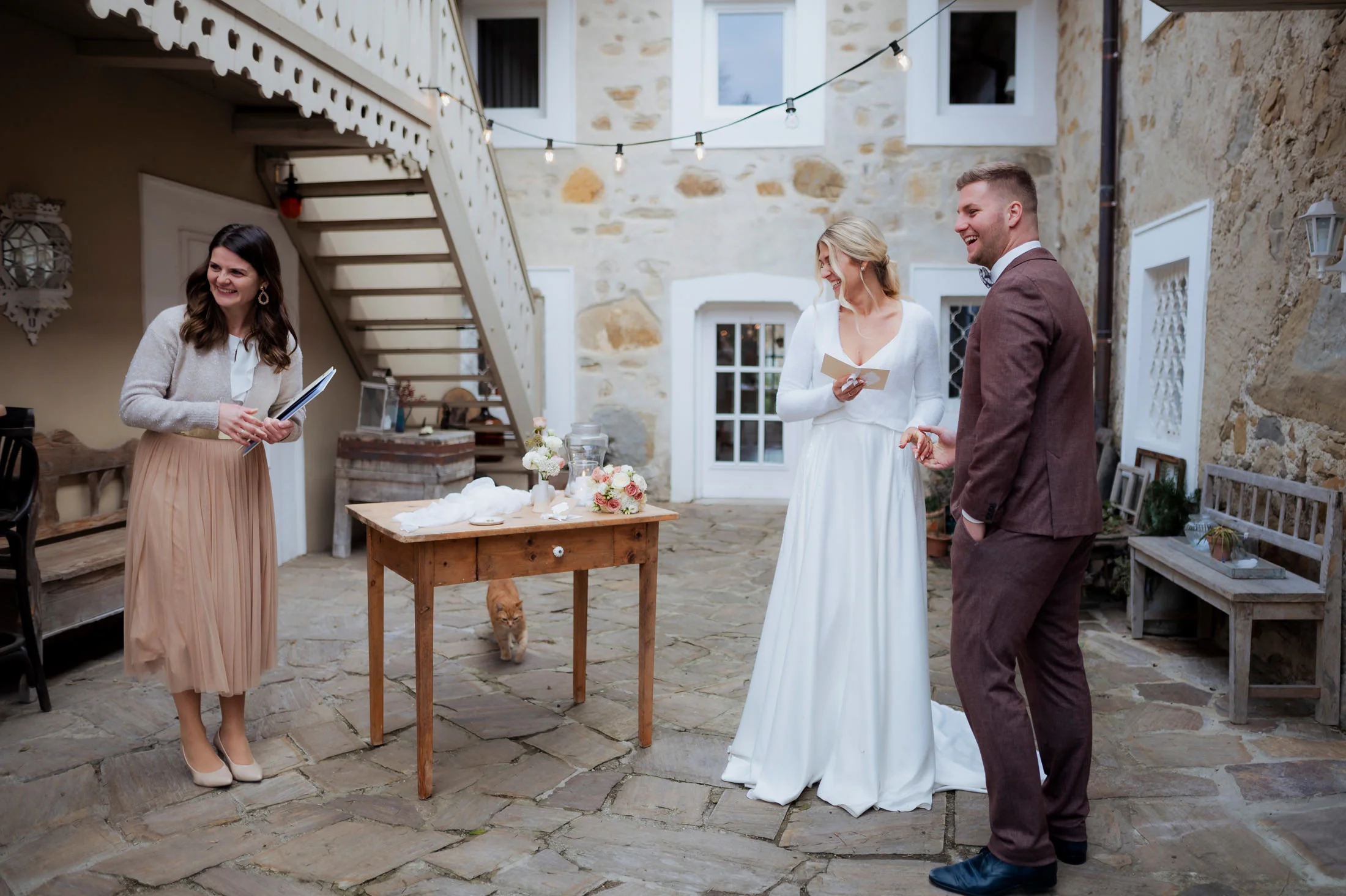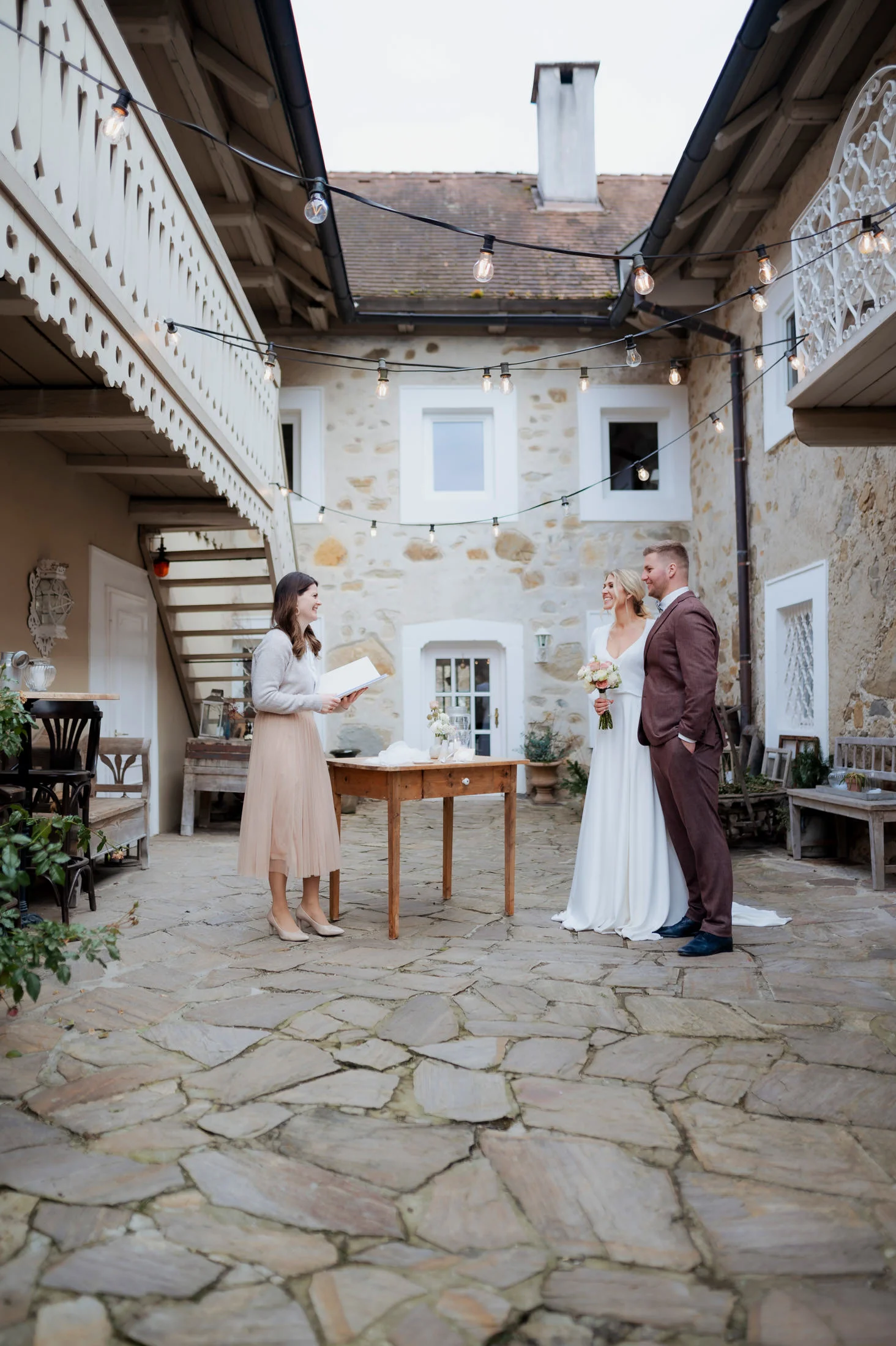 Für Sarah und Dominik war eine freie Trauung genau das Richtige. Diese wurde von Sandra Holzer einfühlsam begleitet und verlieh der Zeremonie eine ganz persönliche Note. Eine freie Trauung in Oberösterreich ermöglicht es Paaren, ihren besonderen Moment genau nach ihren eigenen Wünschen zu gestalten – sei es in einem historischen Gebäude, inmitten der Natur oder in einem gemütlichen Gasthaus wie dem Grosskandlerhaus.