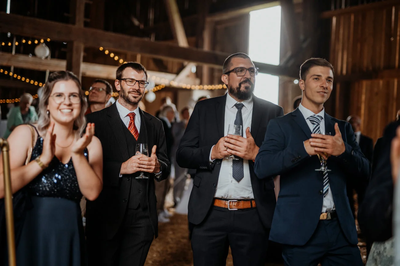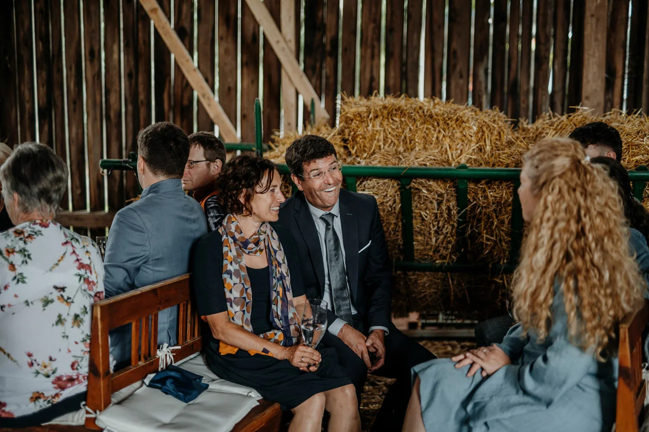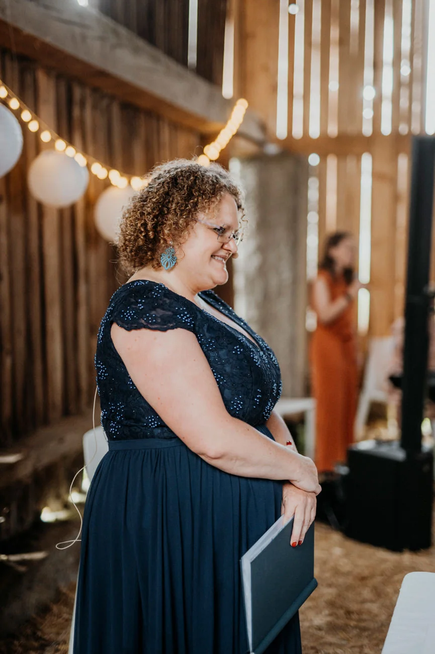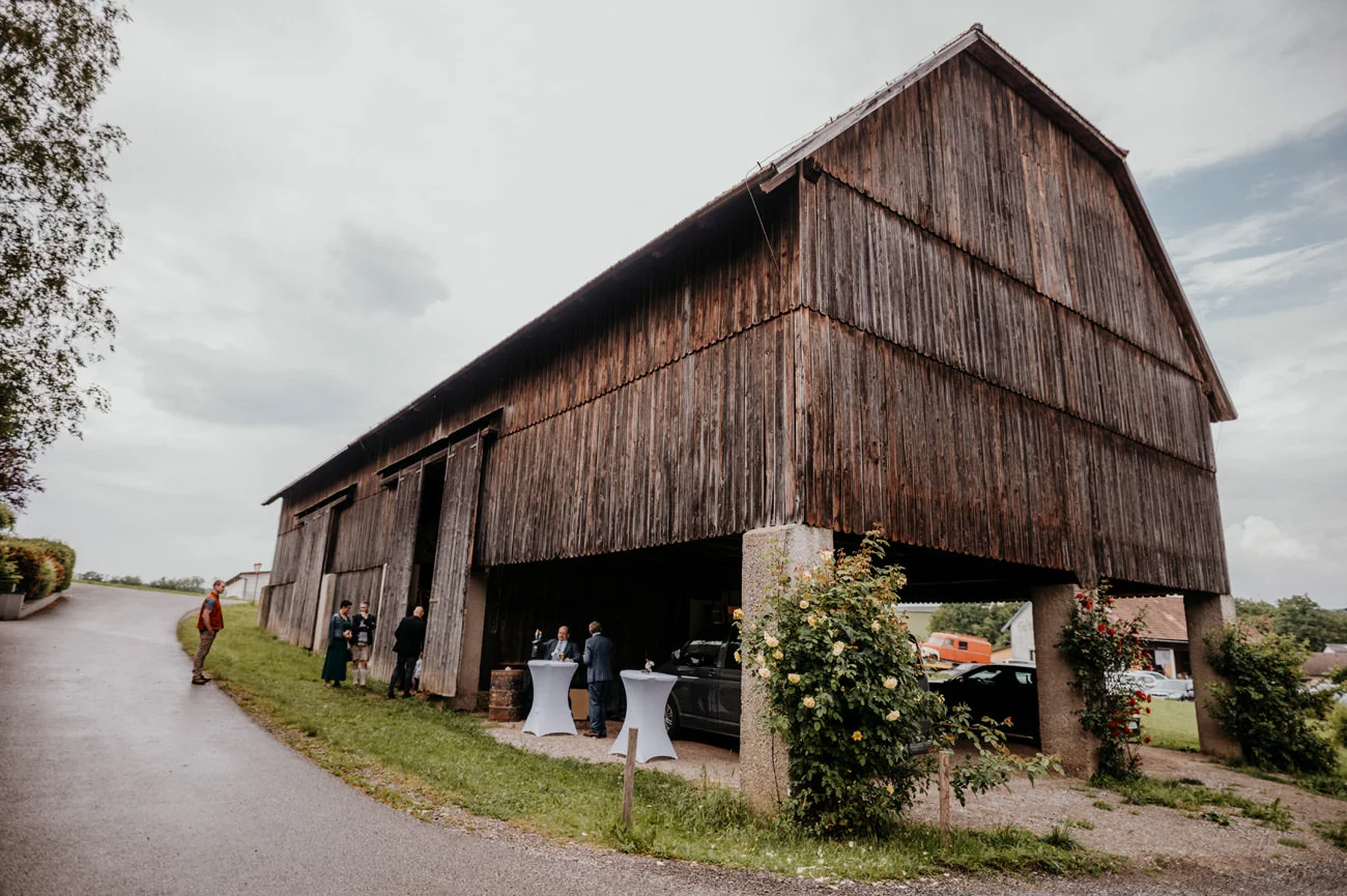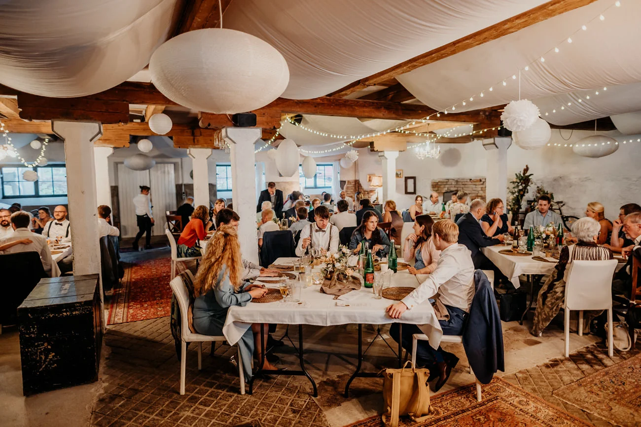 Die eigentliche Trauung fand in der rustikalen Scheune des Gutshofs statt, einem malerischen Ort, der die Atmosphäre mit einer Mischung aus Geschichte und Liebe durchdrang. Die Wände der Scheune trugen Zeugnis von vergangenen Geschichten, während Jasmin und Lukas hier ihre eigene, einzigartige Liebesgeschichte schrieben.