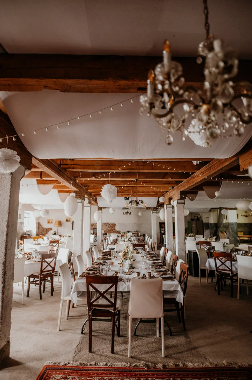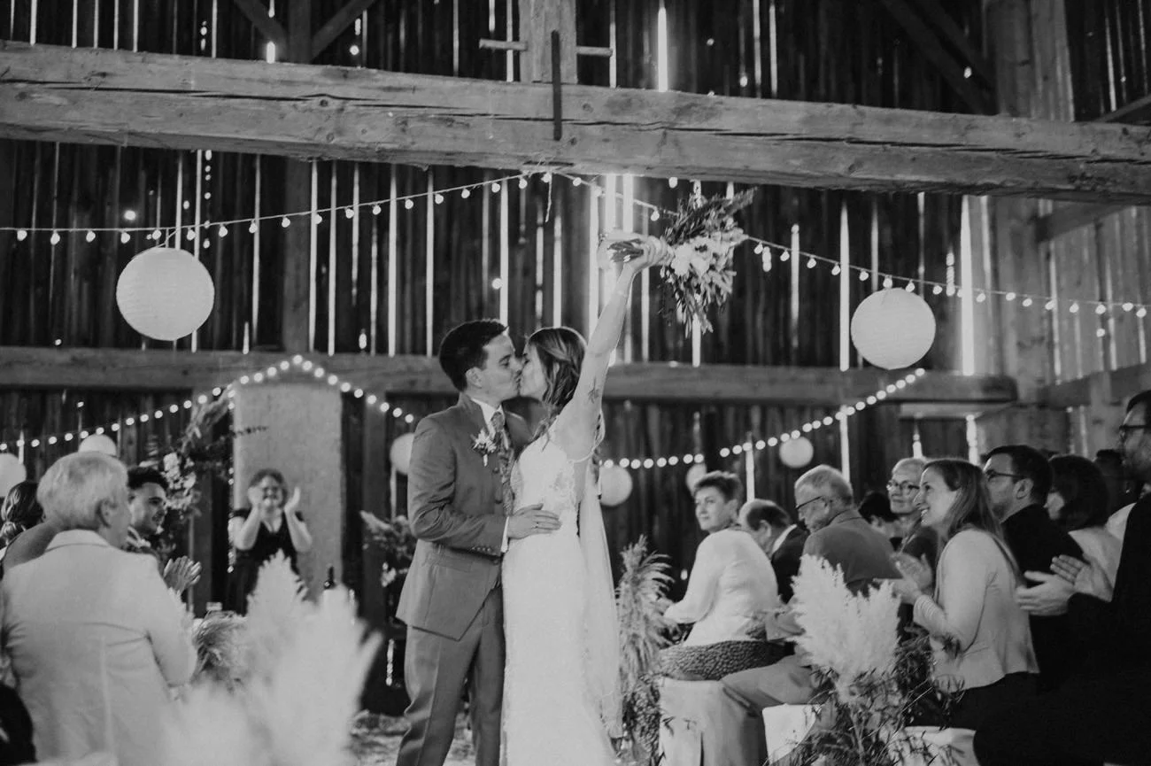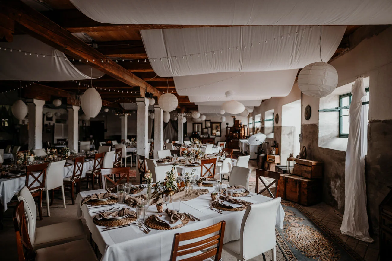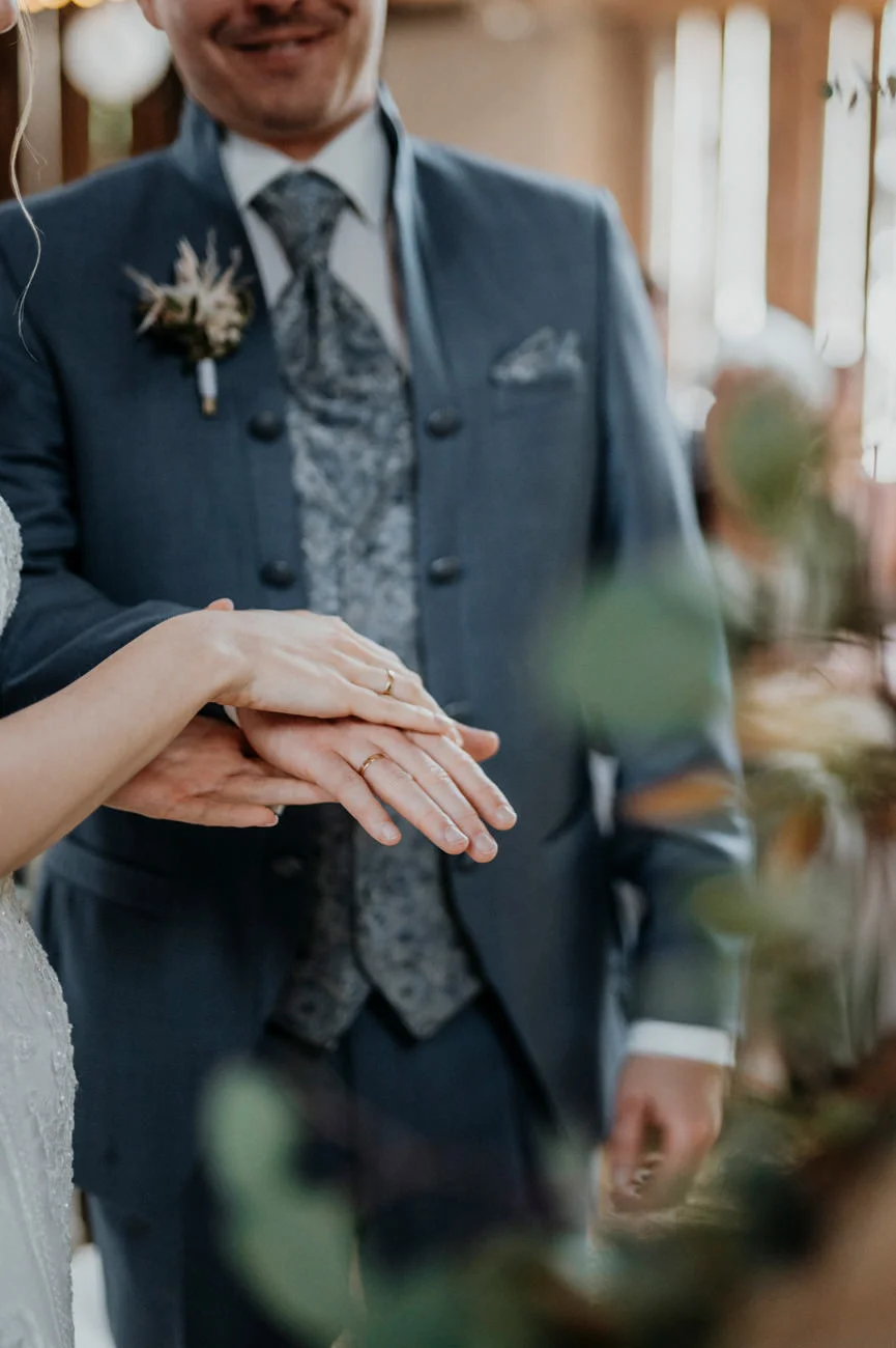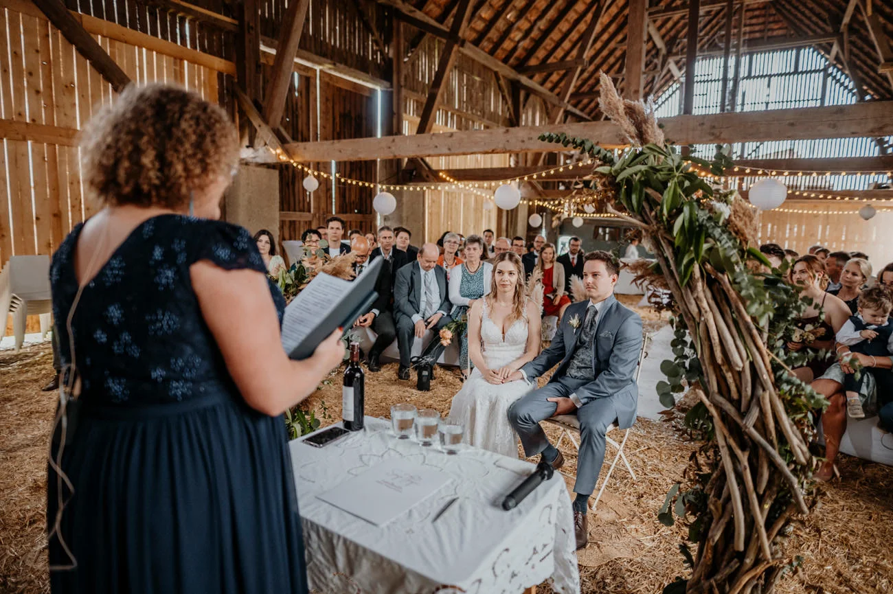 Die eigentliche Trauung fand in der rustikalen Scheune des Gutshofs statt, einem malerischen Ort, der die Atmosphäre mit einer Mischung aus Geschichte und Liebe durchdrang. Die Wände der Scheune trugen Zeugnis von vergangenen Geschichten, während Jasmin und Lukas hier ihre eigene, einzigartige Liebesgeschichte schrieben.