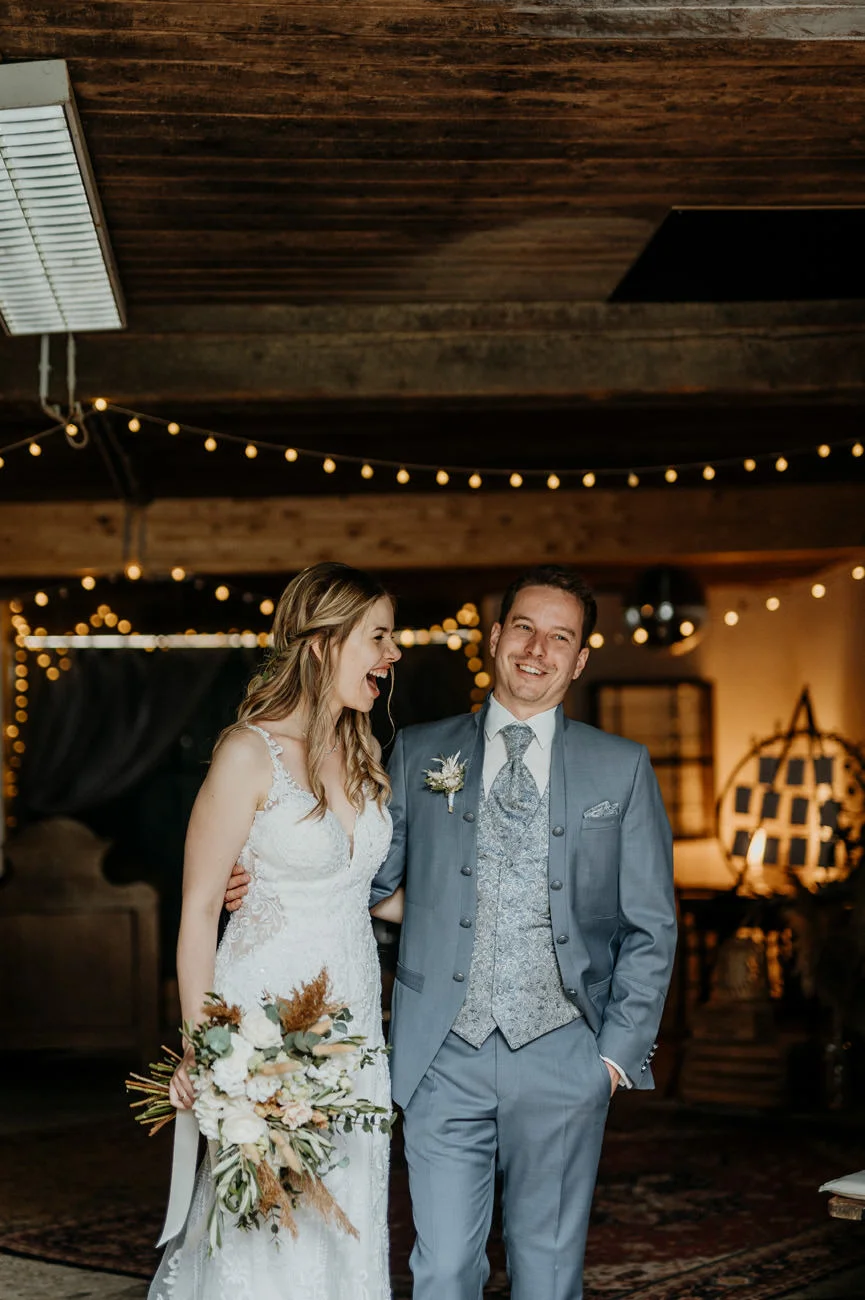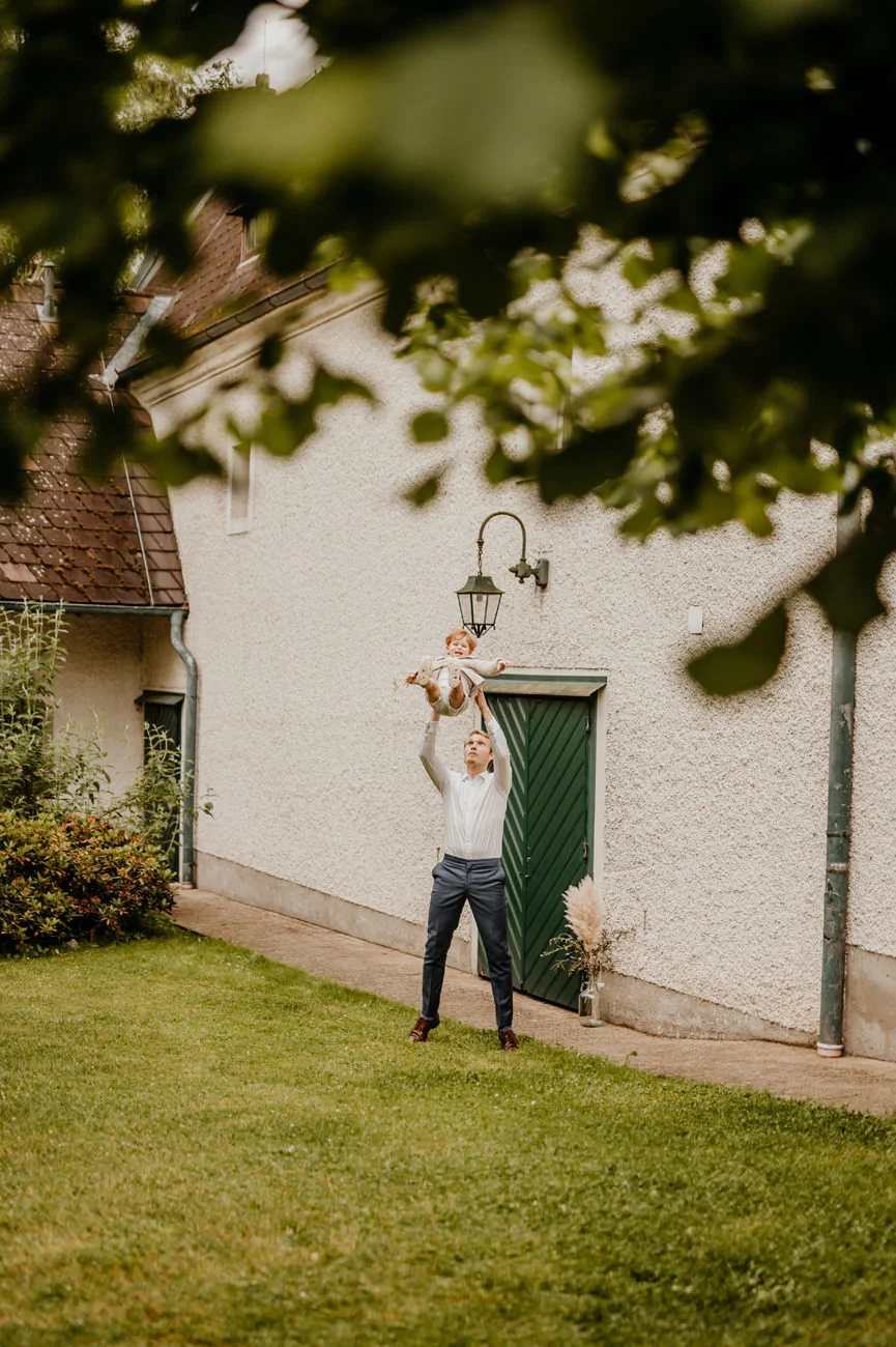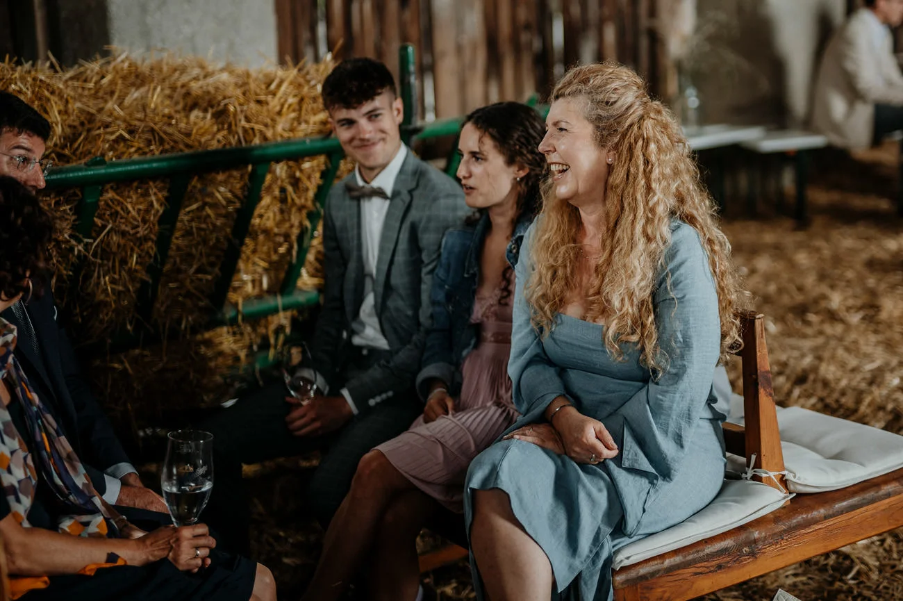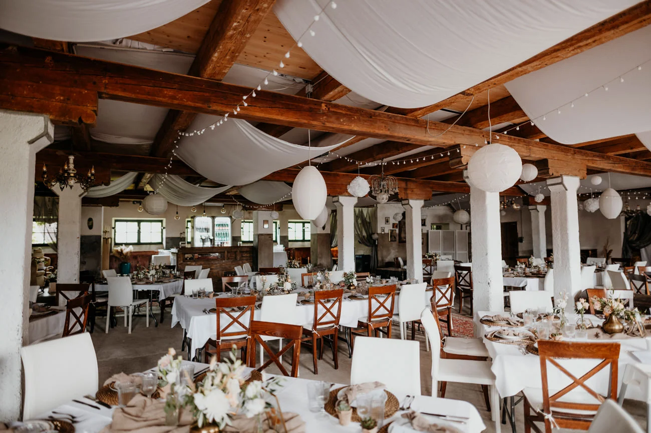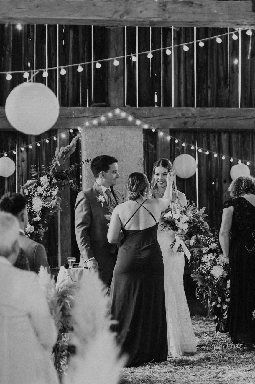 Die eigentliche Trauung fand in der rustikalen Scheune des Gutshofs statt, einem malerischen Ort, der die Atmosphäre mit einer Mischung aus Geschichte und Liebe durchdrang. Die Wände der Scheune trugen Zeugnis von vergangenen Geschichten, während Jasmin und Lukas hier ihre eigene, einzigartige Liebesgeschichte schrieben.
