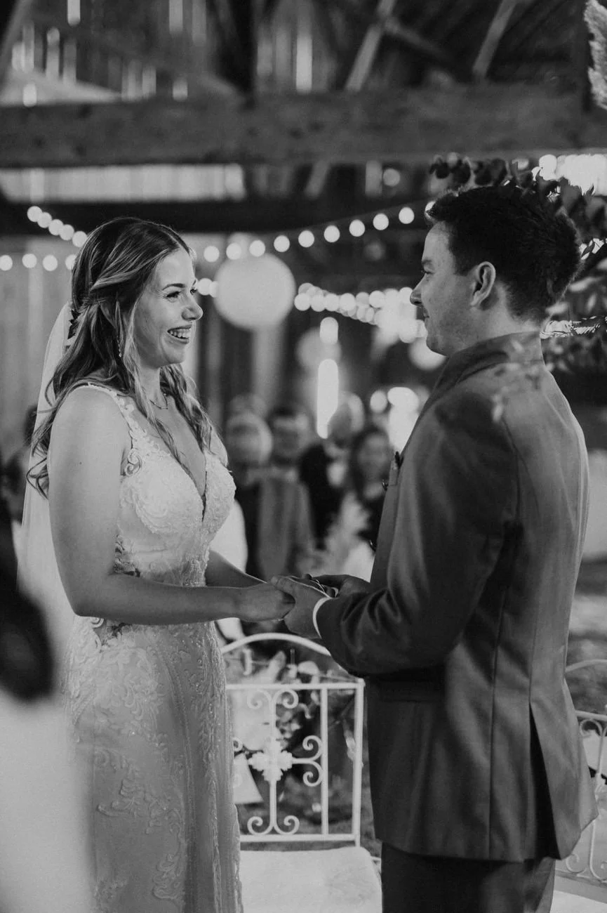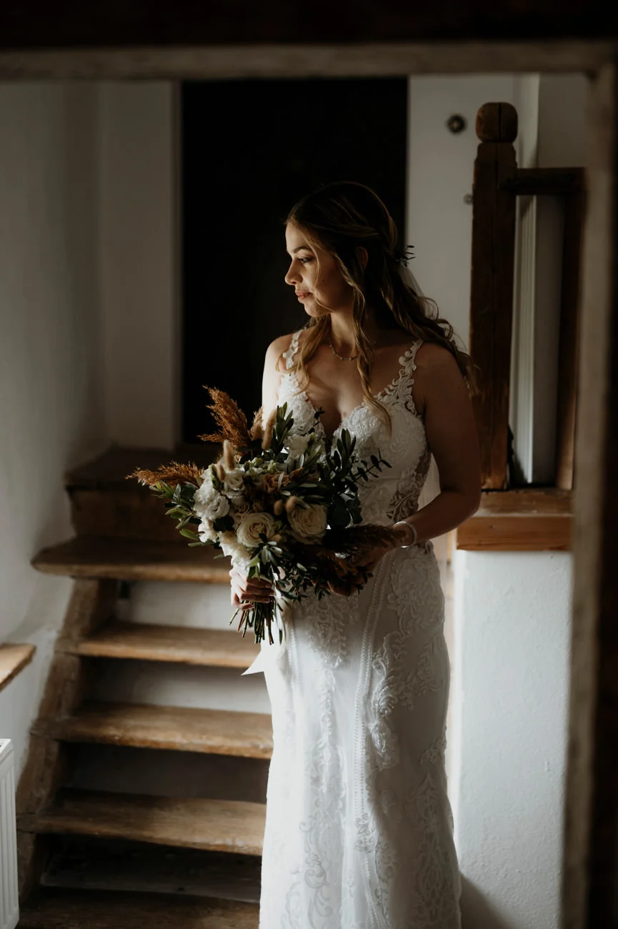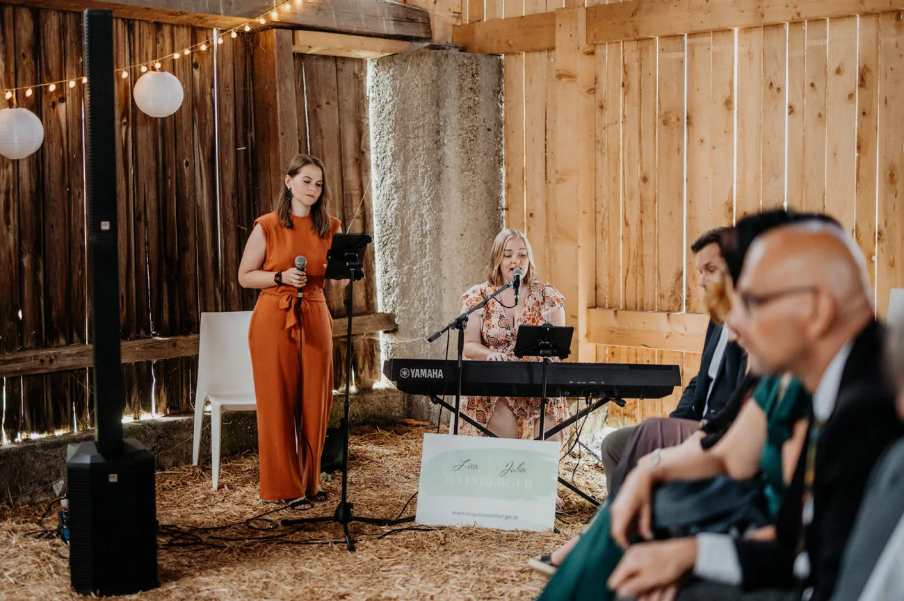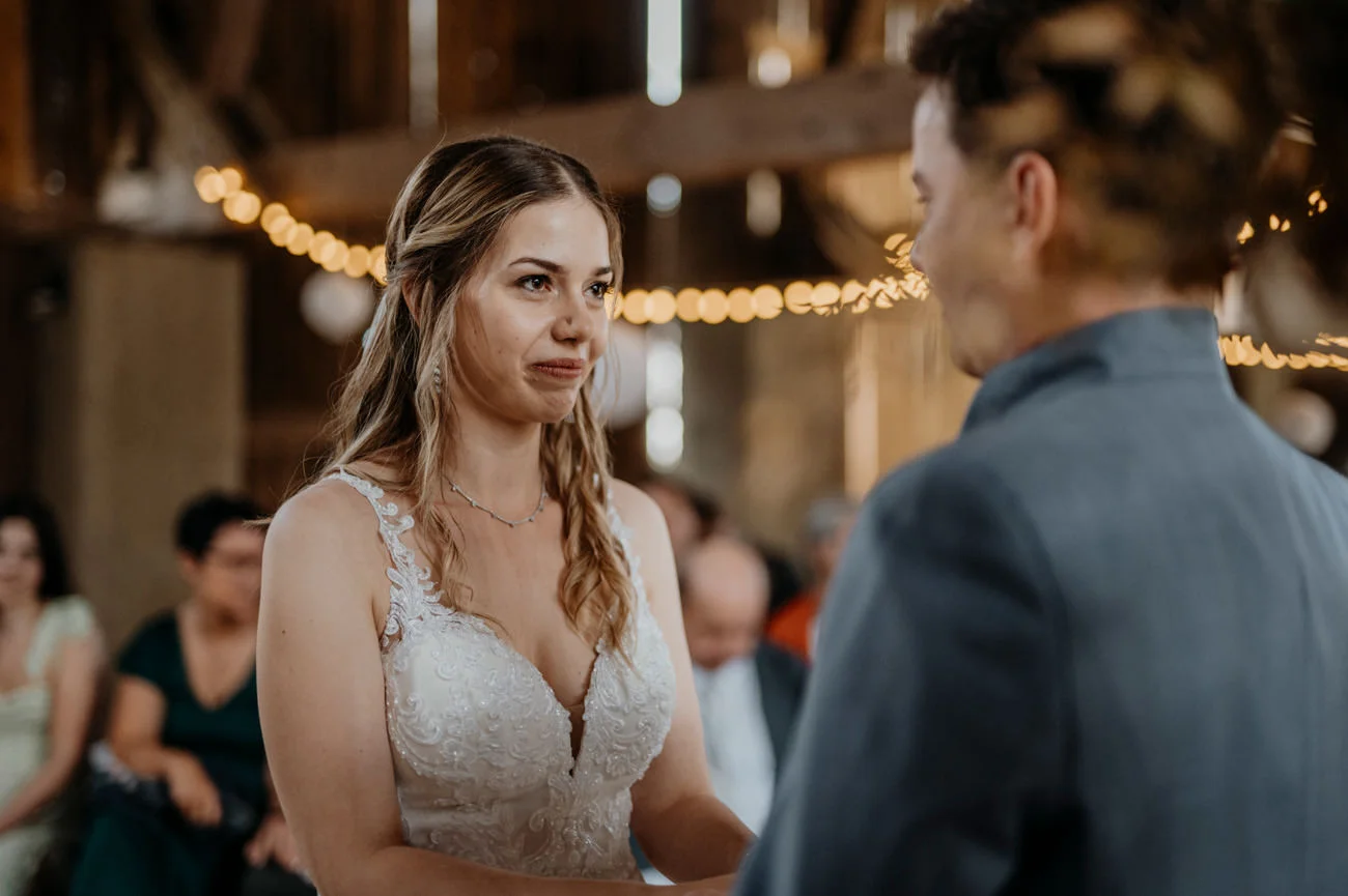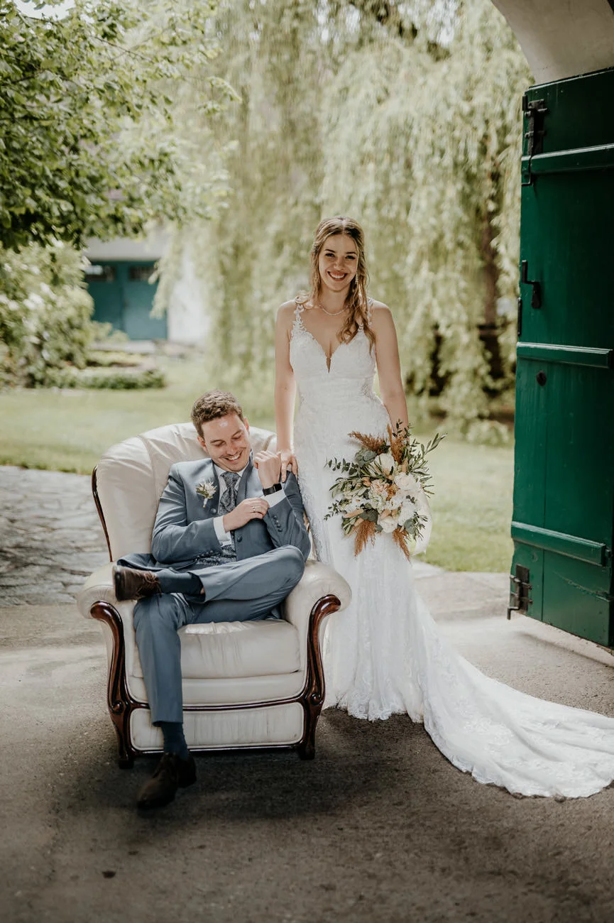 Die eigentliche Trauung fand in der rustikalen Scheune des Gutshofs statt, einem malerischen Ort, der die Atmosphäre mit einer Mischung aus Geschichte und Liebe durchdrang. Die Wände der Scheune trugen Zeugnis von vergangenen Geschichten, während Jasmin und Lukas hier ihre eigene, einzigartige Liebesgeschichte schrieben.