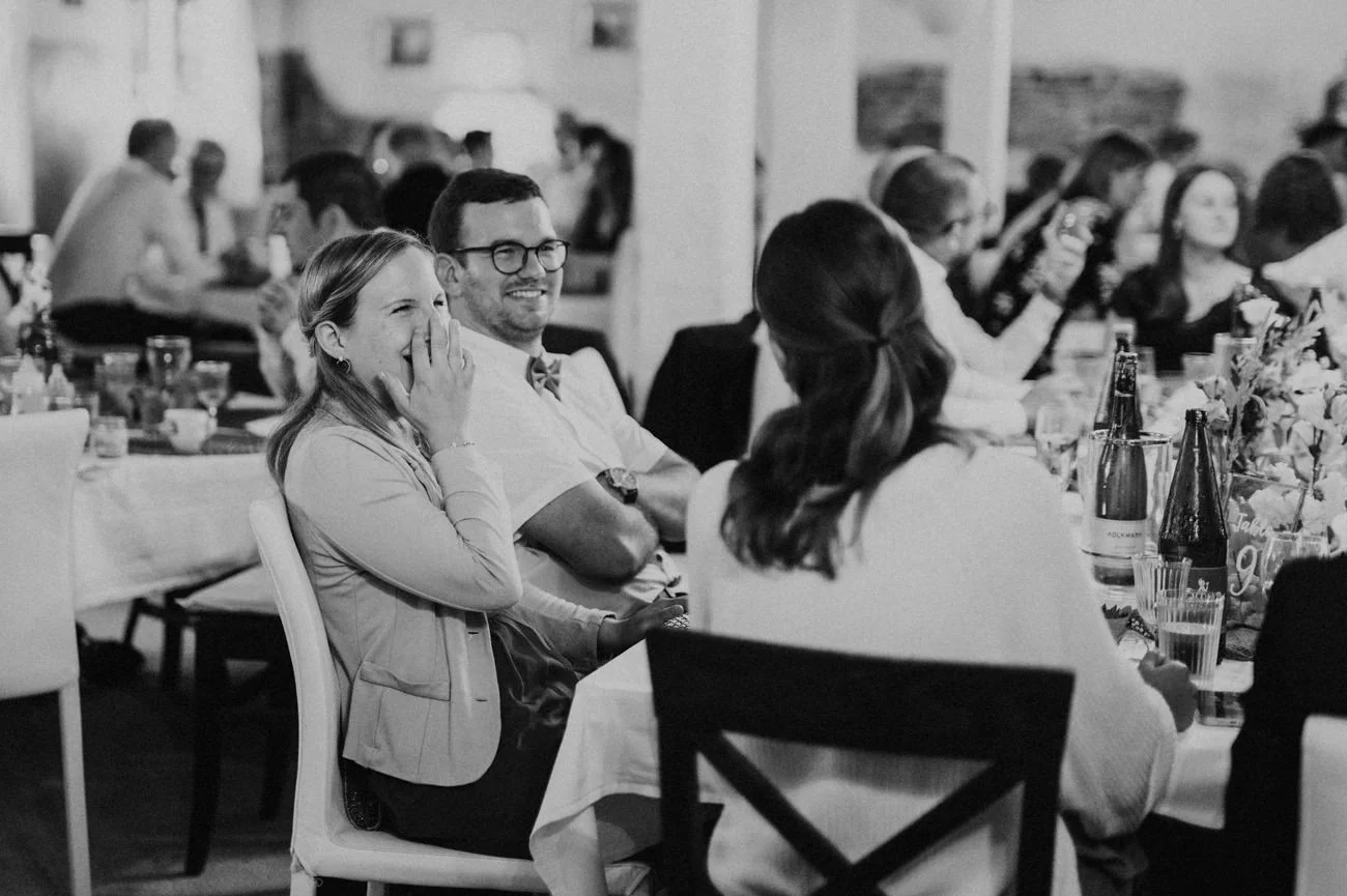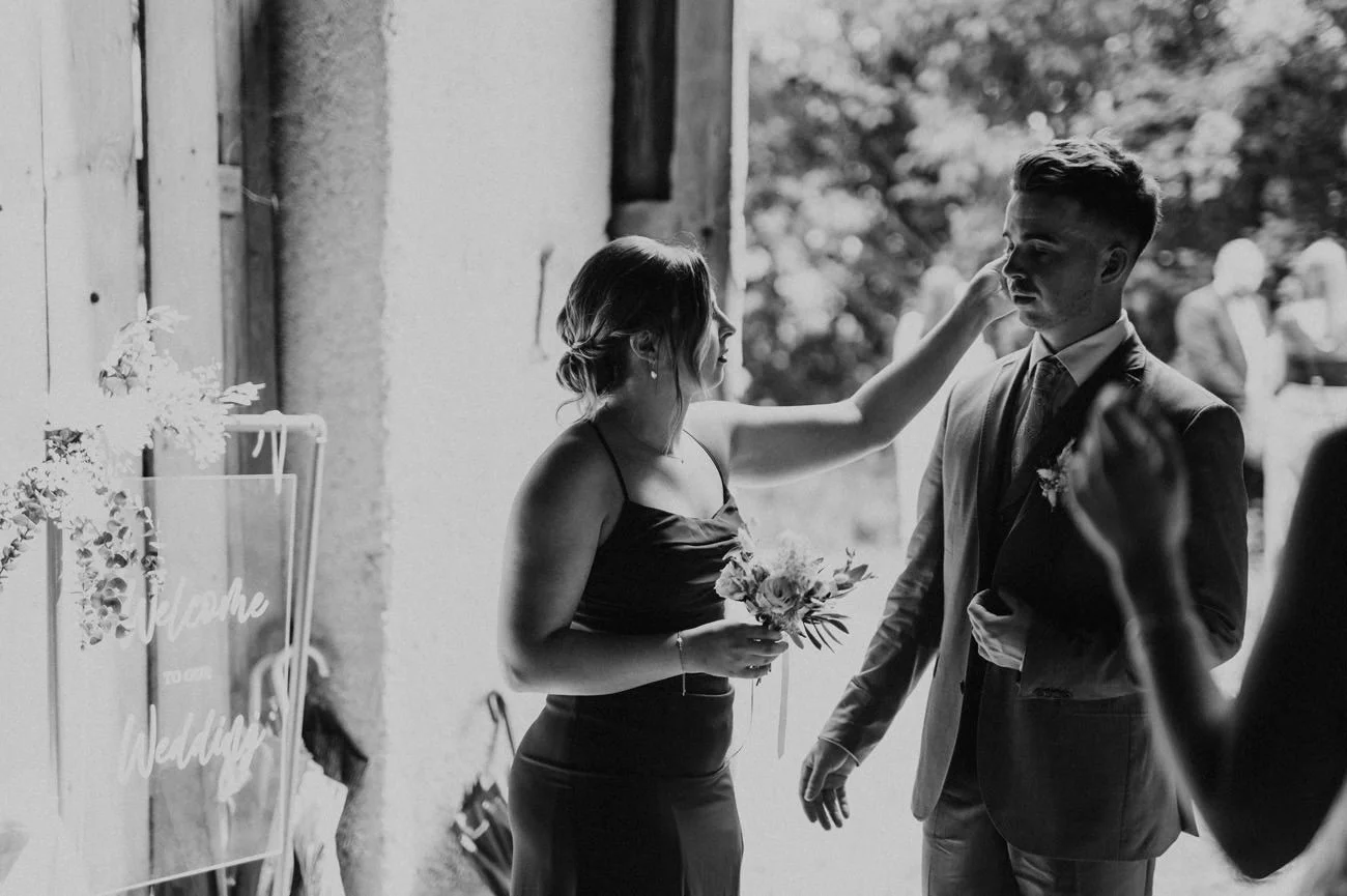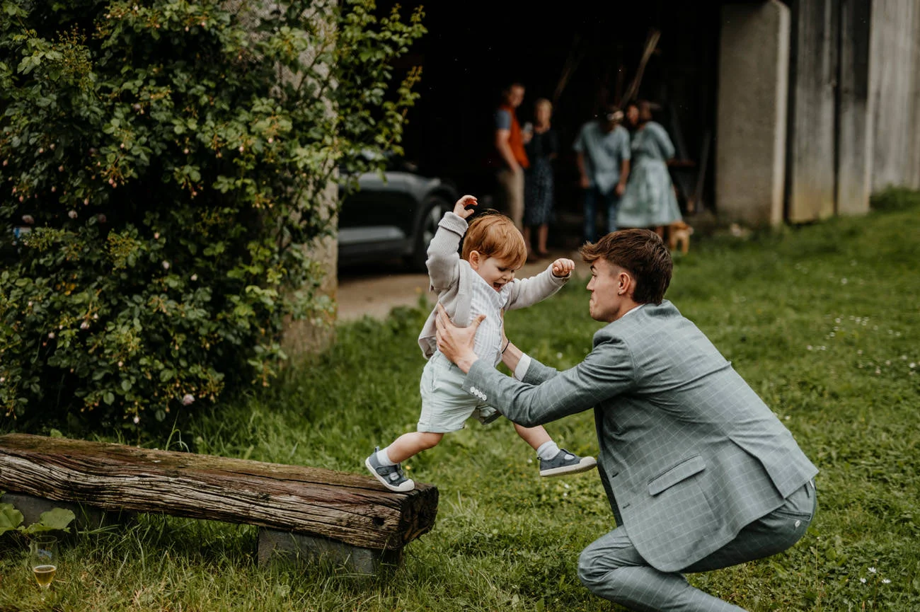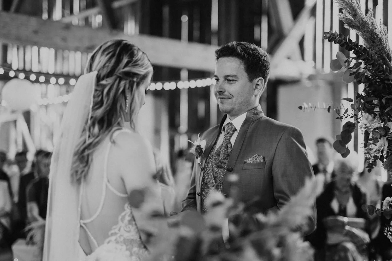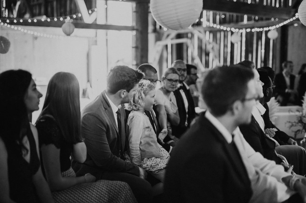 Die eigentliche Trauung fand in der rustikalen Scheune des Gutshofs statt, einem malerischen Ort, der die Atmosphäre mit einer Mischung aus Geschichte und Liebe durchdrang. Die Wände der Scheune trugen Zeugnis von vergangenen Geschichten, während Jasmin und Lukas hier ihre eigene, einzigartige Liebesgeschichte schrieben.