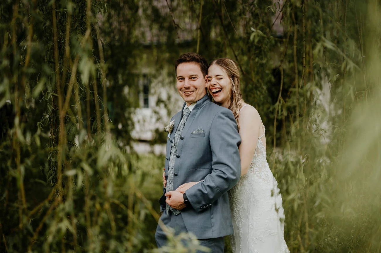 Die Fotos dieses besonderen Tages erzählen von den aufgeregten Vorbereitungen im Gutshof. Auch von der feierlichen Zeremonie in der Scheune und von der zurückliegenden standesamtlichen Trauung im Schloss Rothschild. Der Gutshof fungierte als emotionales Zentrum dieser Erzählung, eingebettet in die Geschichte von Jasmin und Lukas.