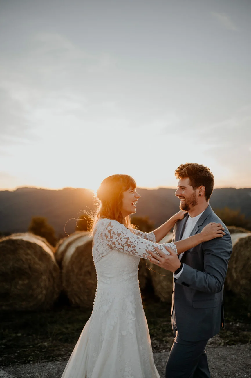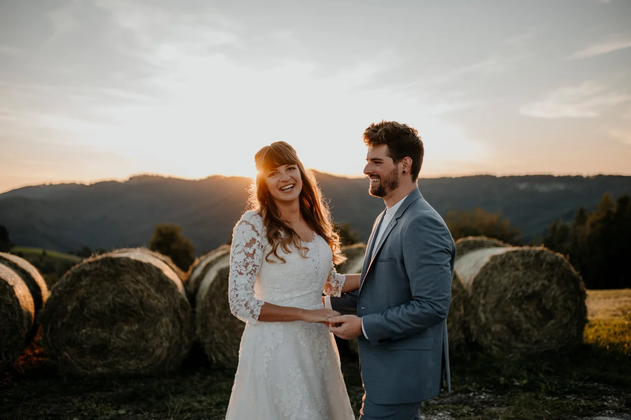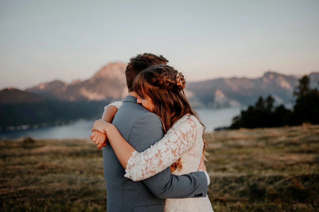 Nach der festlichen Hochzeitsfeier im Gmundnerberghaus begaben sich Trixi und Clemens auf den Gmundnerberg für ein Shooting unter freiem Himmel. Die Sonne tauchte den Traunstein in ein warmes Glühen und schuf eine magische Kulisse für die Aufnahmen, die ihre Liebe in jedem Bild einfingen.