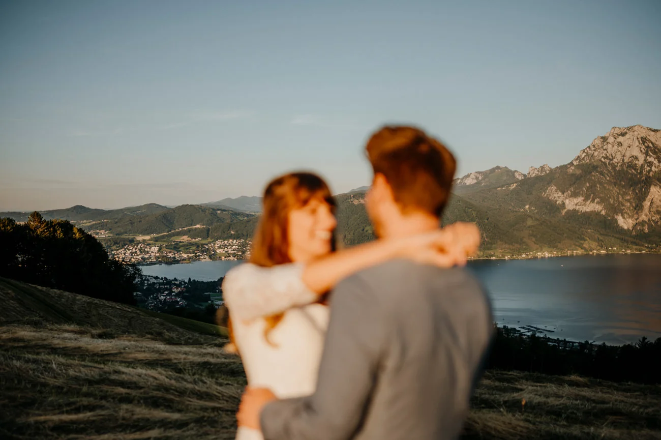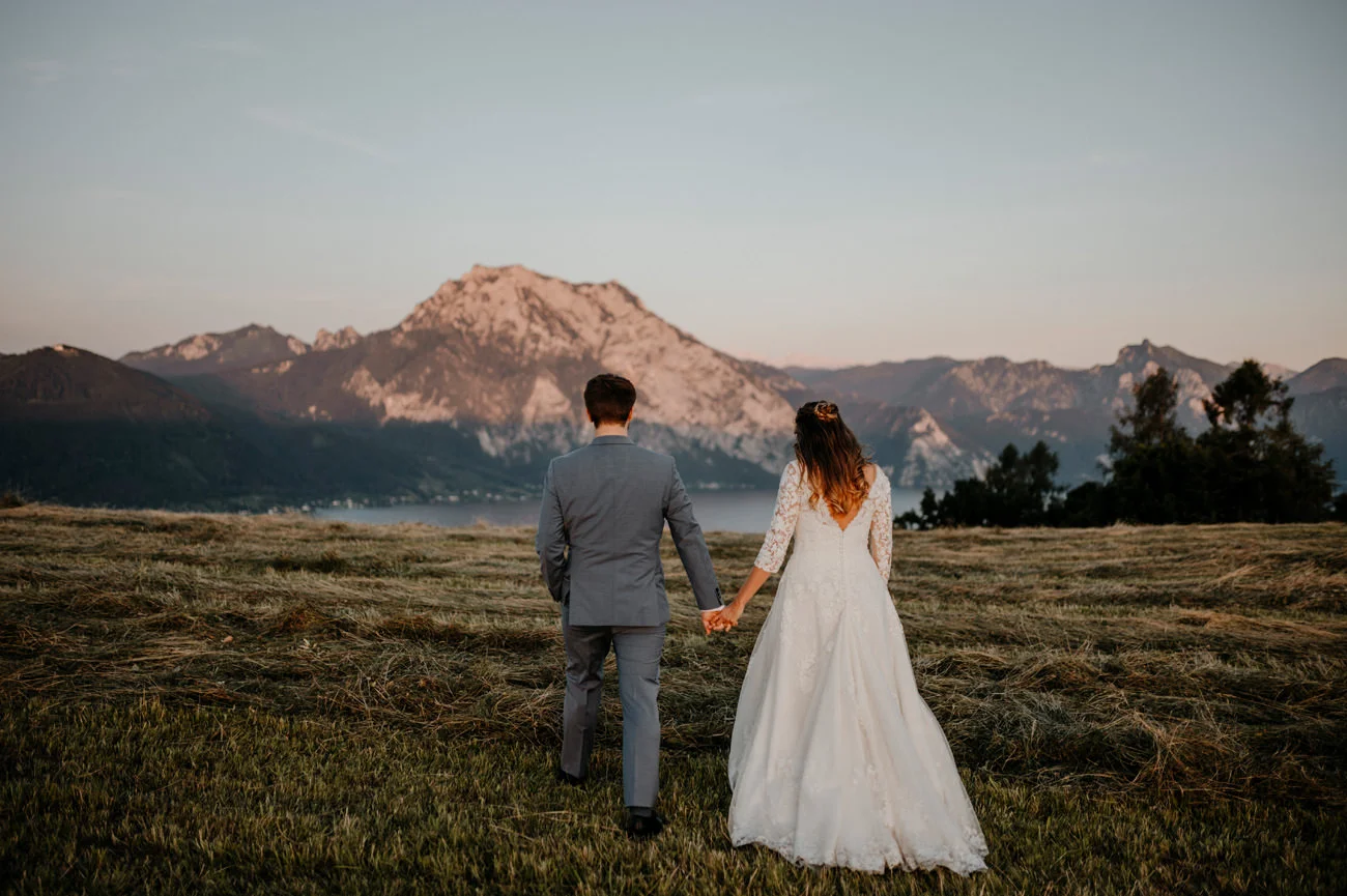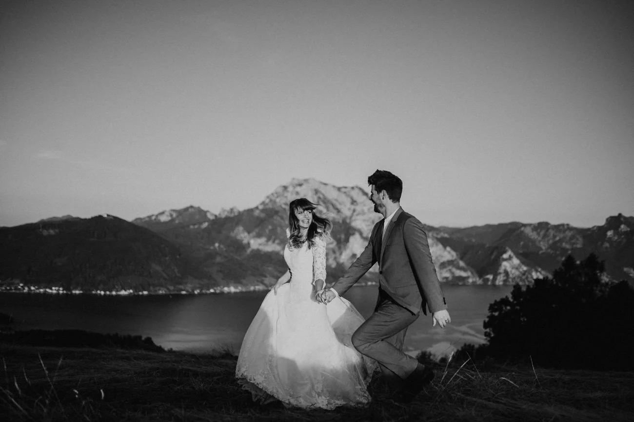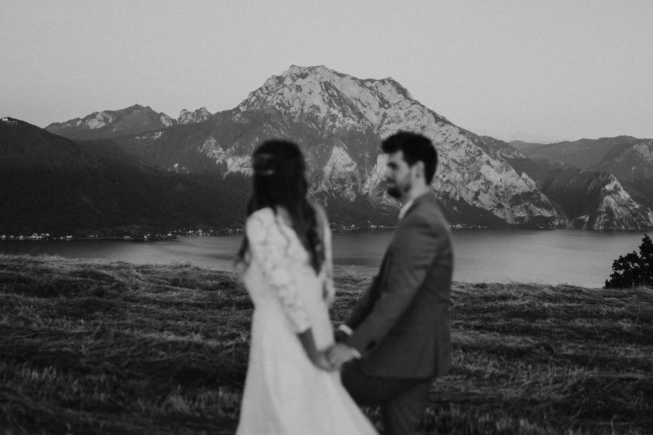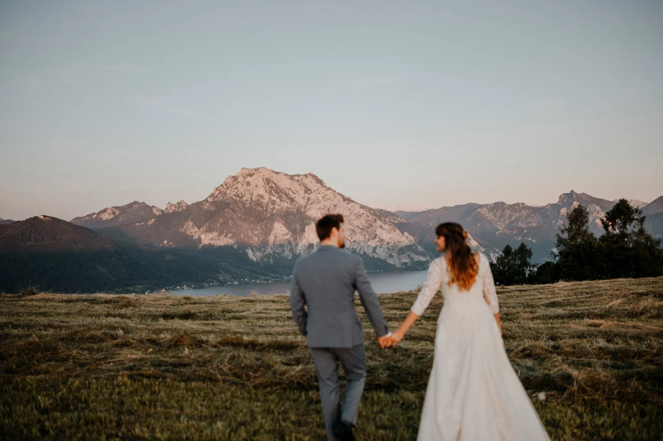 Die Entscheidung, den Gmundnerberg als Kulisse für ihr Shooting zu wählen, verlieh ihren Hochzeitsfotos eine unverwechselbare Natürlichkeit und Schönheit. Das Bergpanorama, eingefangen in jedem Bild, spiegelt die Erhabenheit ihrer Liebe wider.
