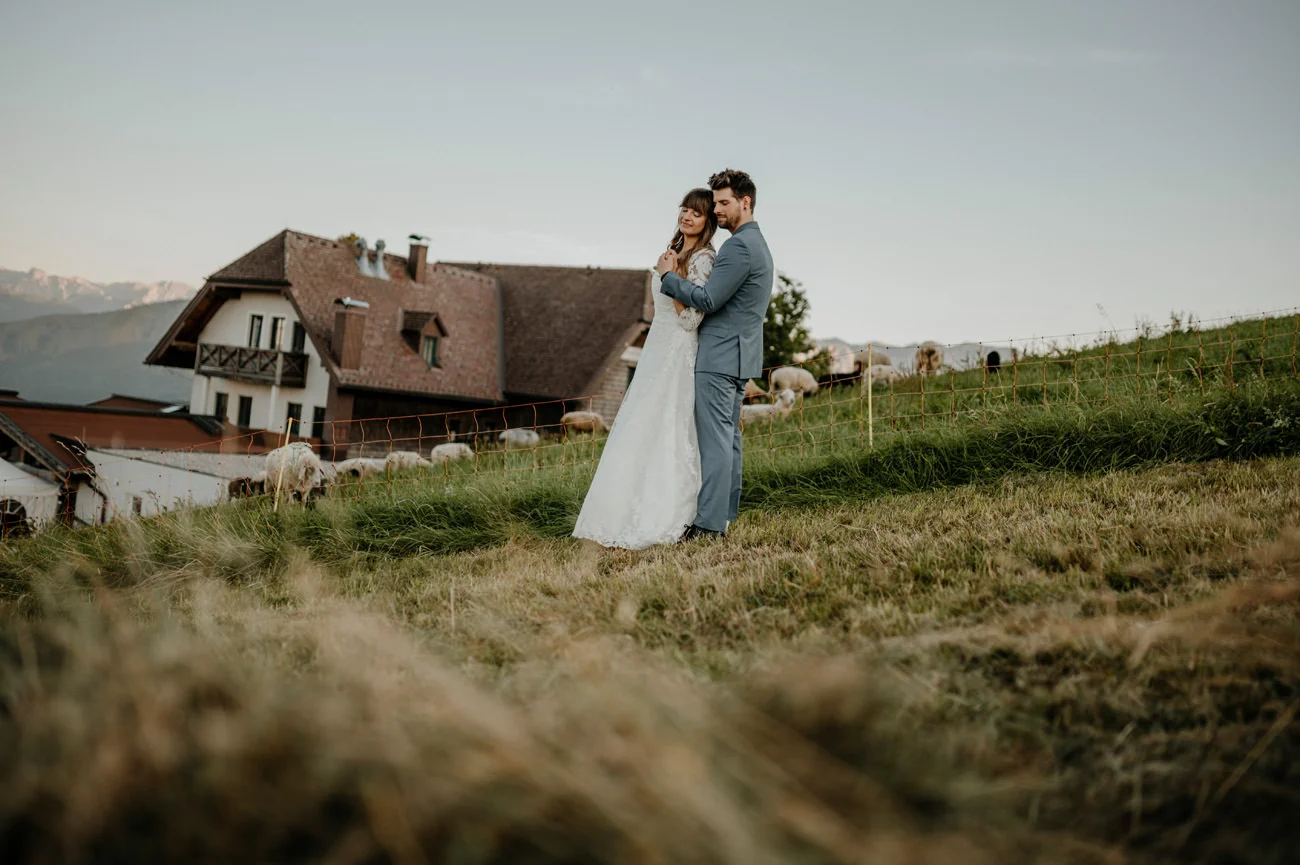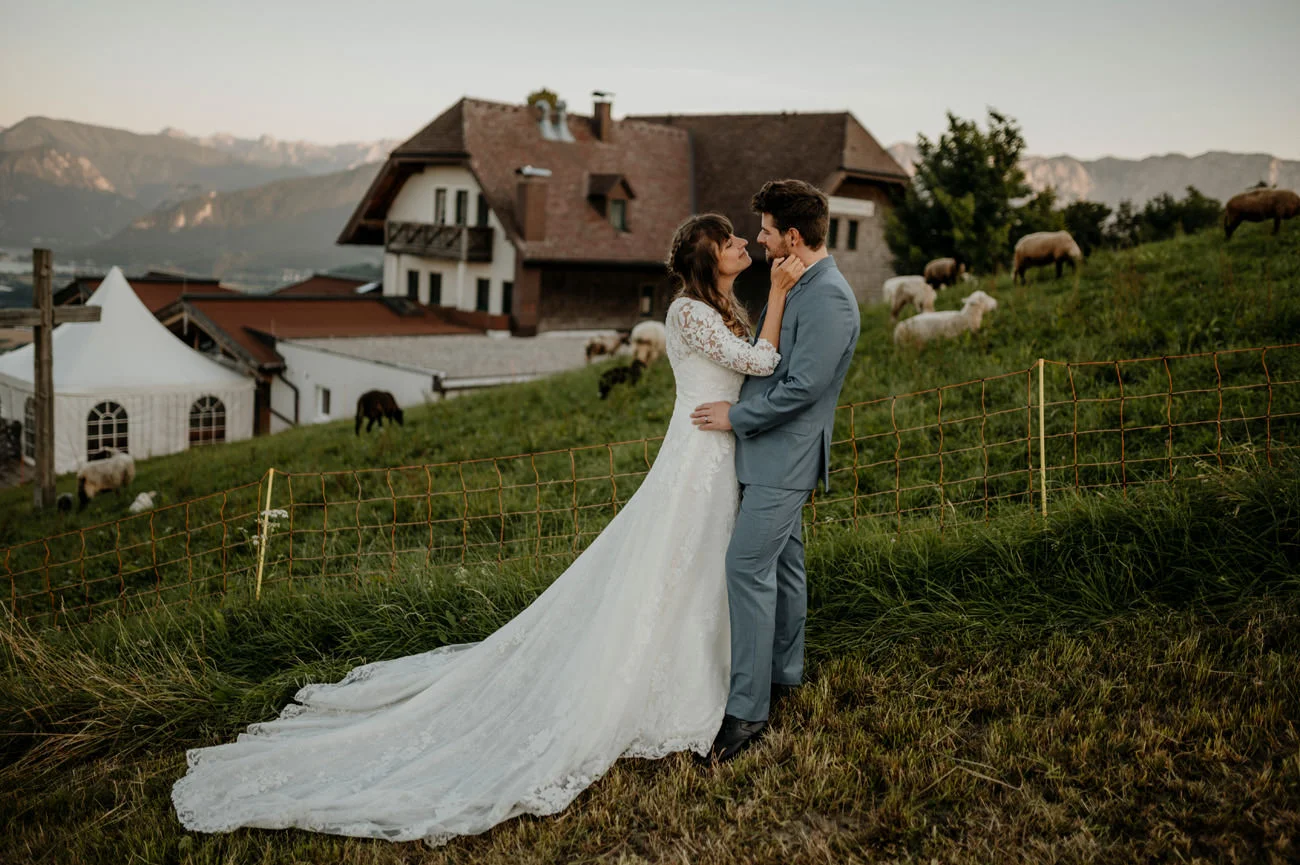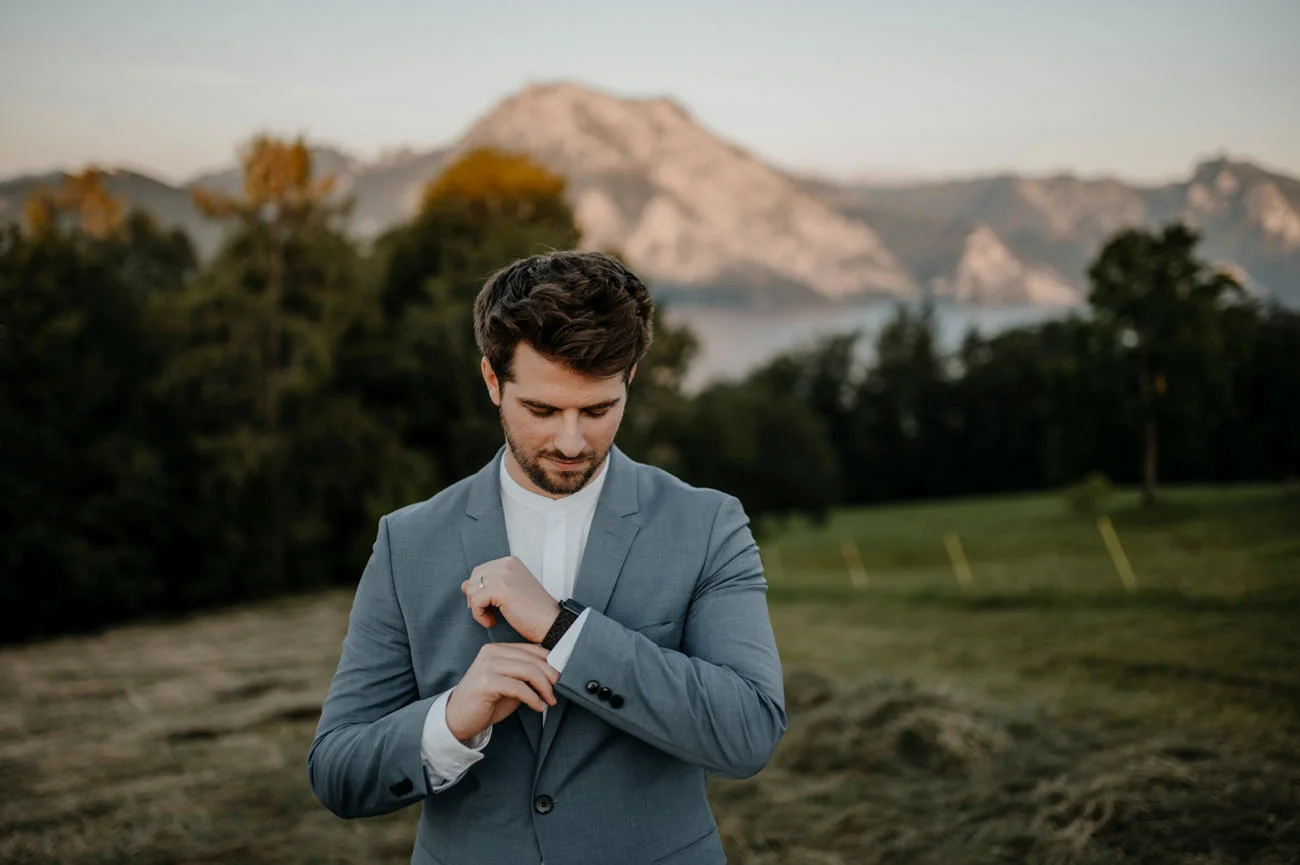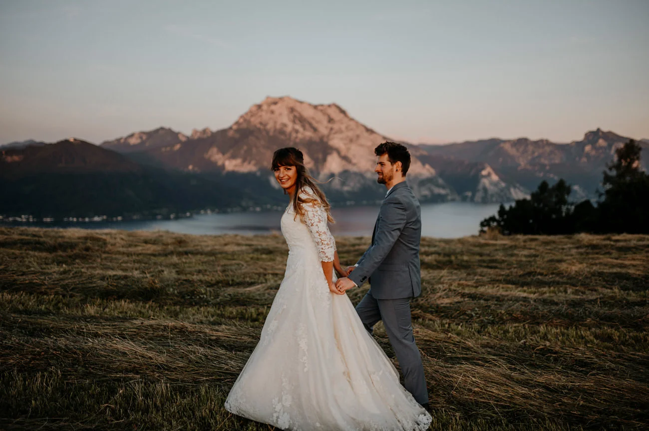 Die Entscheidung, den Gmundnerberg als Kulisse für ihr Shooting zu wählen, verlieh ihren Hochzeitsfotos eine unverwechselbare Natürlichkeit und Schönheit. Das Bergpanorama, eingefangen in jedem Bild, spiegelt die Erhabenheit ihrer Liebe wider.