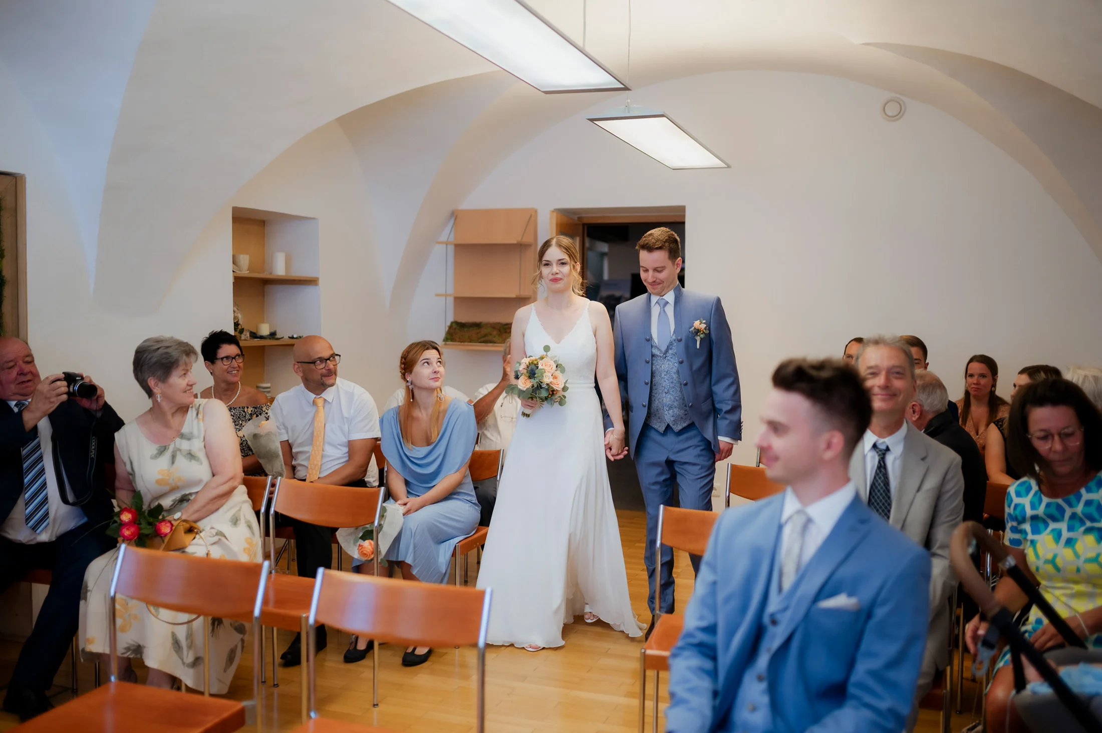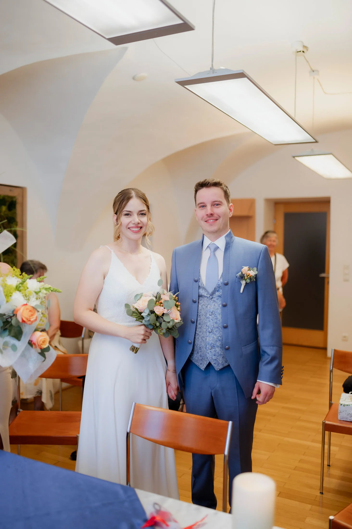 Die Trauung fand im Standesamt Waidhofen an der Ybbs statt, das mit seinem historischen Flair eine wunderschöne Kulisse für emotionale Hochzeitsfotos bietet. Nach der Zeremonie ging es für das frisch vermählte Brautpaar und ihre Gäste weiter zum Schloss Rothschild, wo die Sommerhochzeit in stilvollem Ambiente gefeiert wurde.