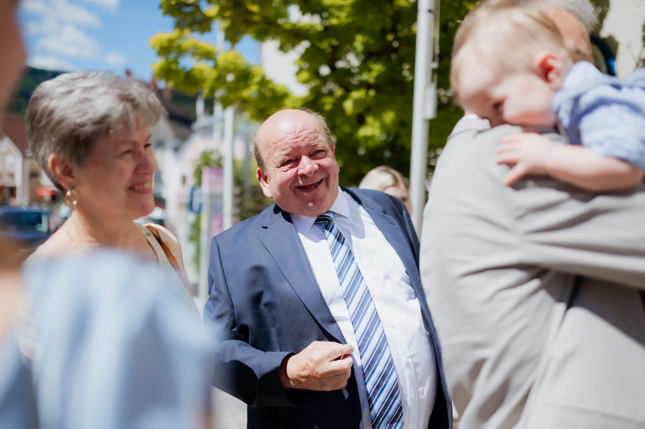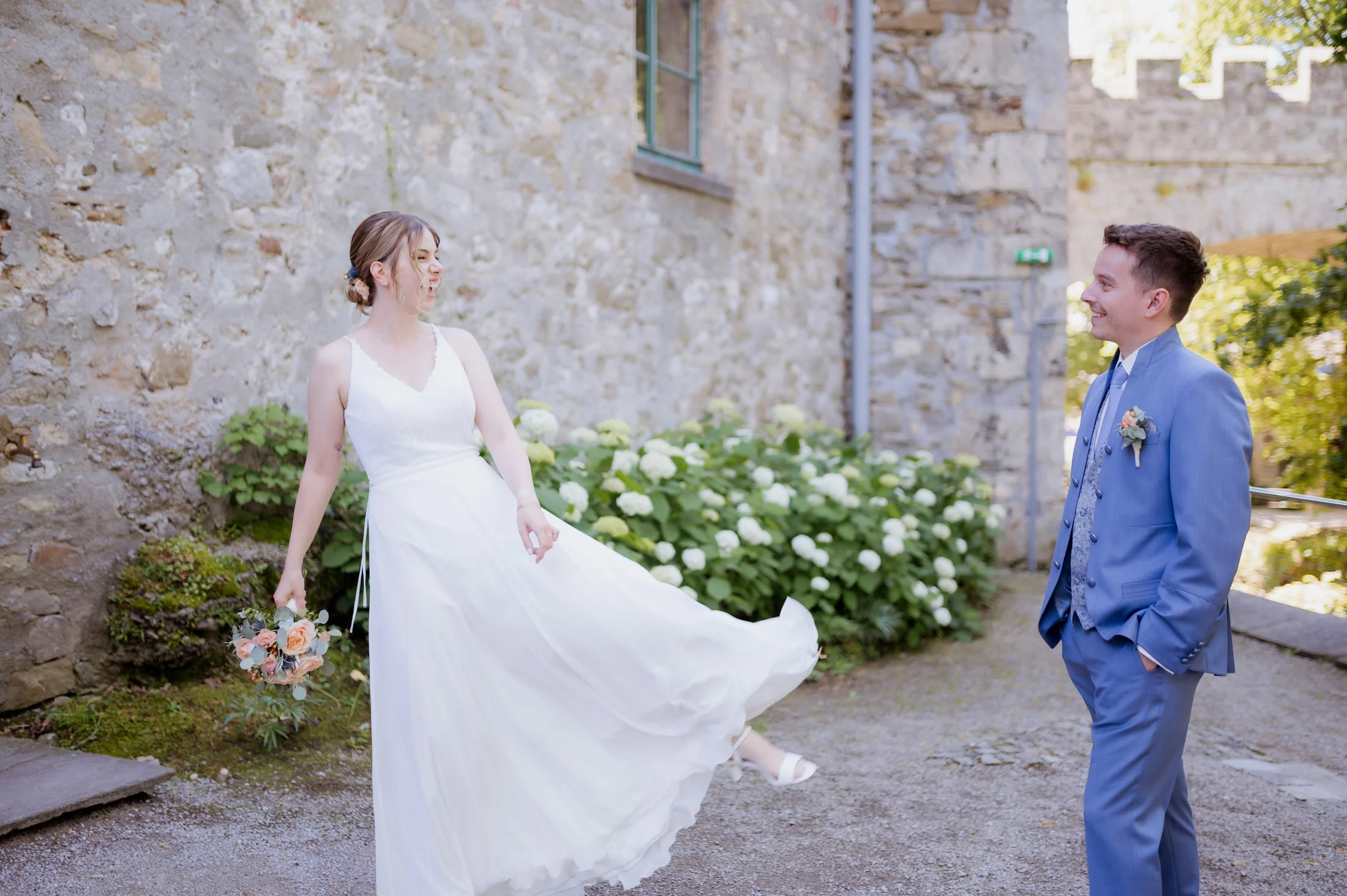 Die sonnigen Lichtverhältnisse, das prachtvolle Schloss und die malerische Umgebung von Waidhofen an der Ybbs boten perfekte Bedingungen für eine natürliche und emotionale Hochzeitsreportage. Vom ersten Blickaustausch während der Trauung bis hin zum romantischen Paarshooting im Schlossgarten – jeder Moment wurde in authentischen Bildern festgehalten.