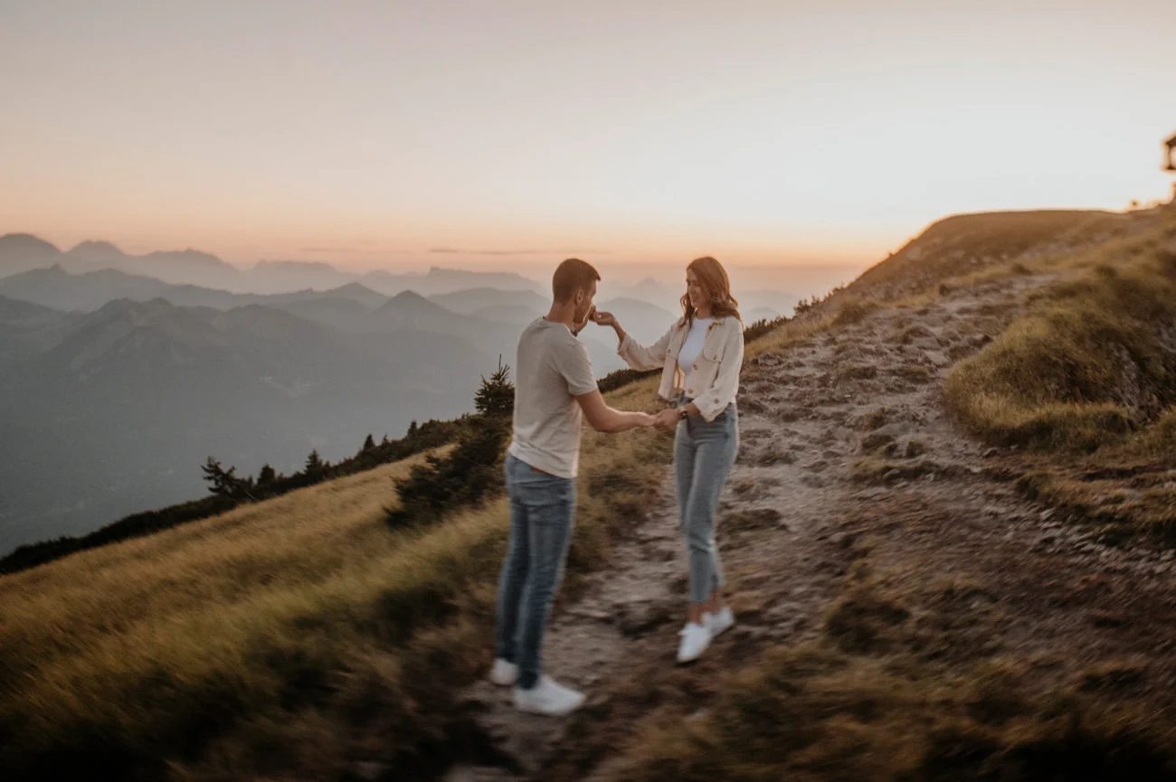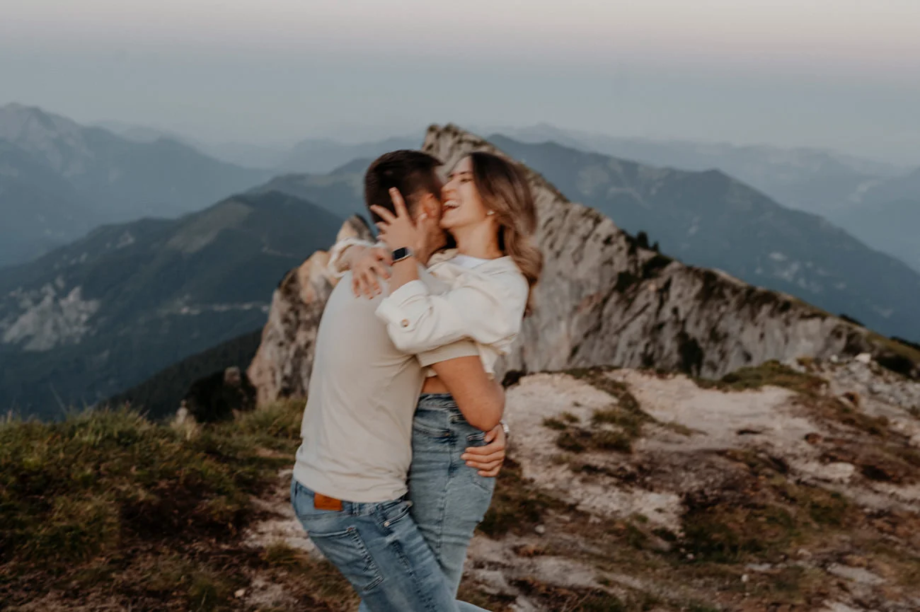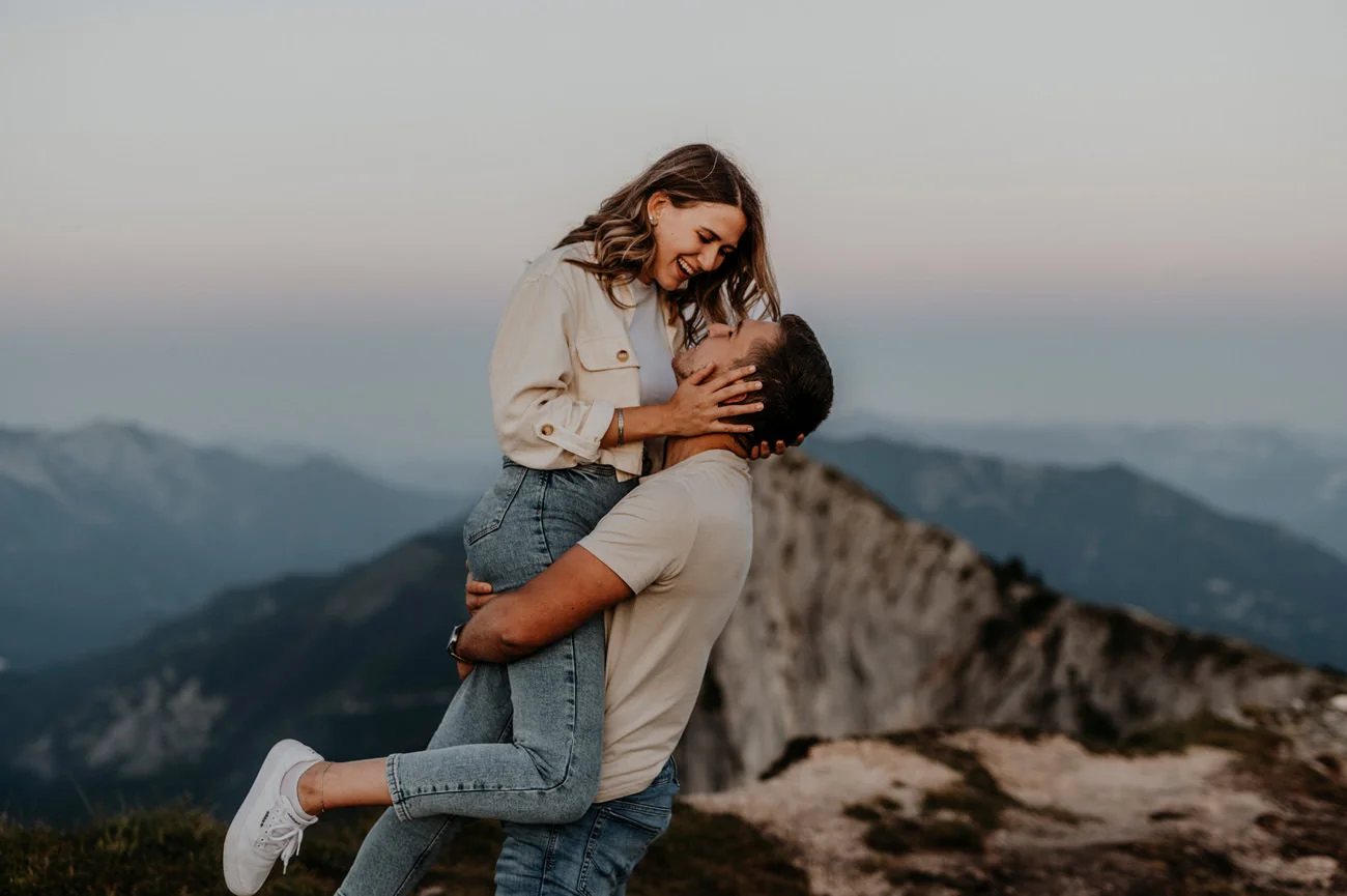 - Romantische Atmosphäre: Die Höhe und Abgeschiedenheit eines Berges schaffen eine romantische Atmosphäre. Diese bewirken sich positiv auf die Stimmung und Authentizität der Verlobungsfotos.