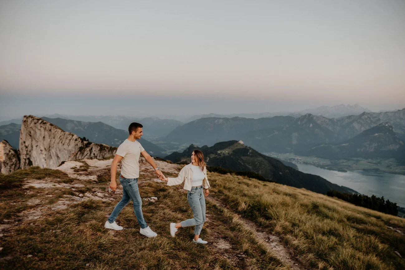 - Persönliche und einzigartige Geschichte: Die Wahl eines Berges als Kulisse für Verlobungsfotos ermöglicht es, eine persönliche und einzigartige Geschichte zu erzählen, die mit einem bestimmten Ort und Moment verbunden ist. Schafberg Verlobungsfotos Wolfgangsee.
