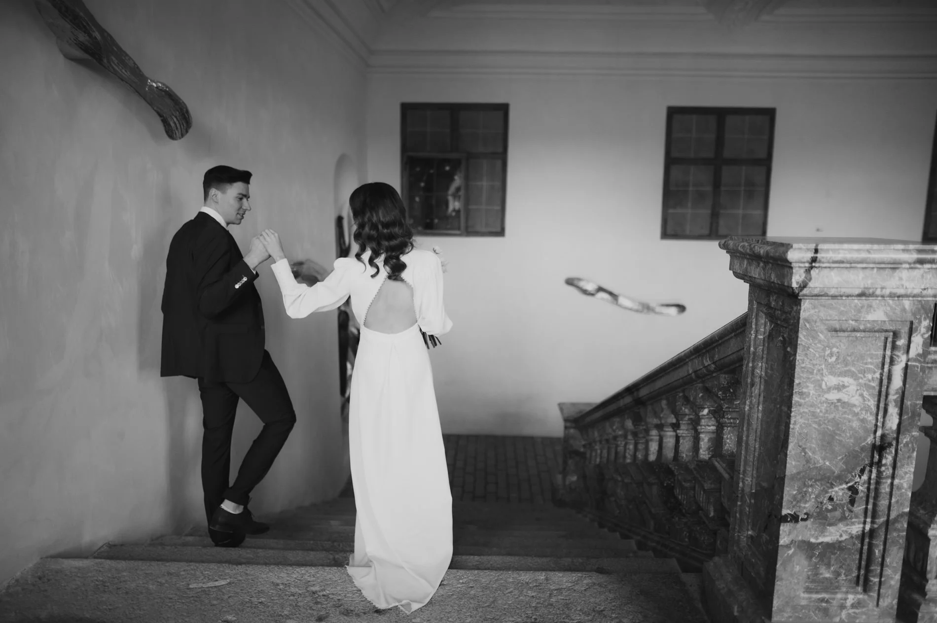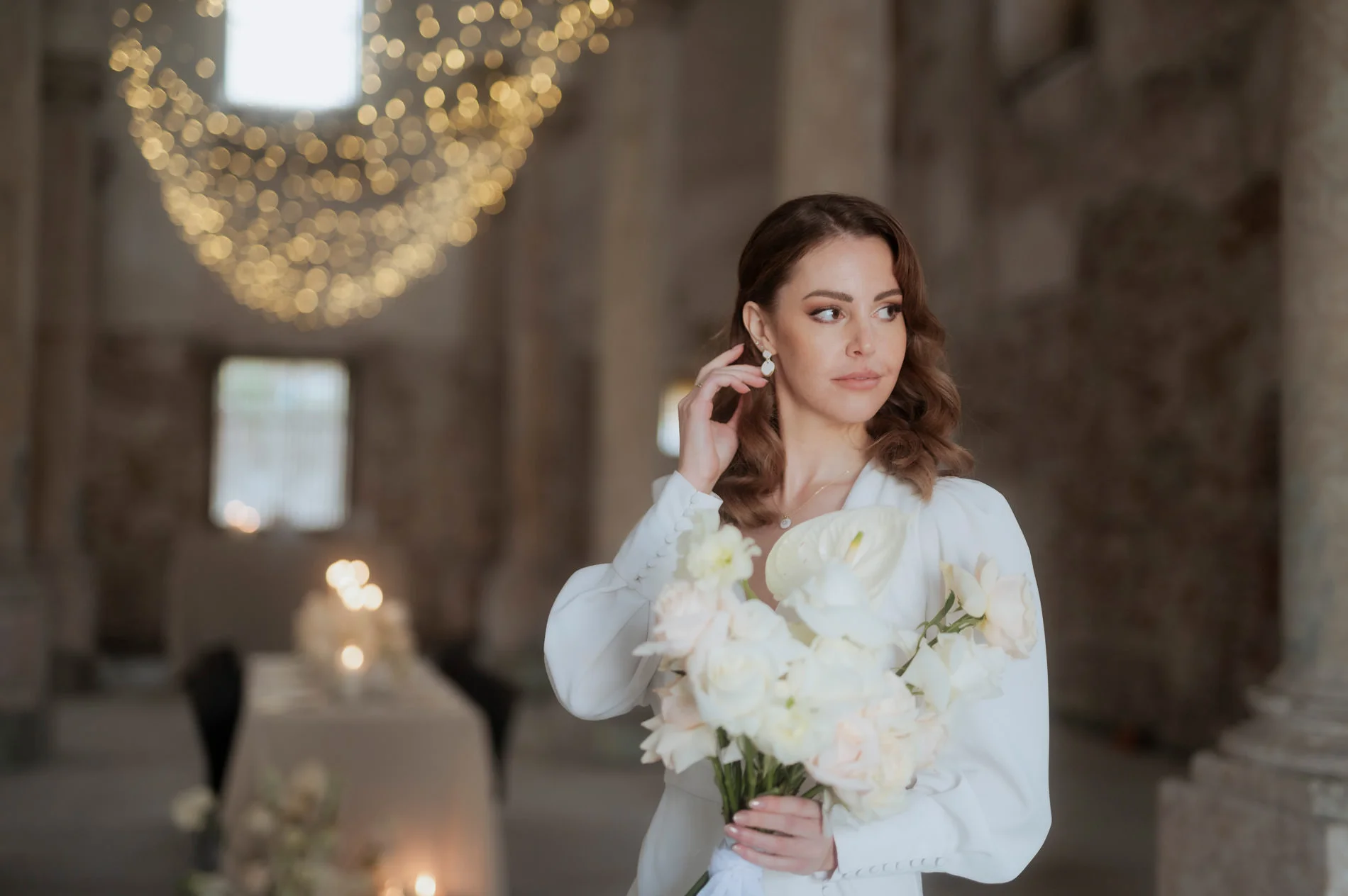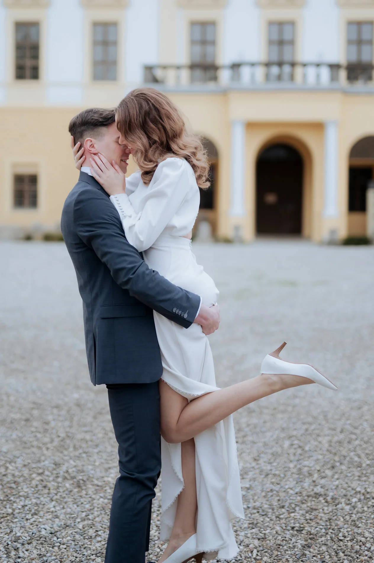 Claudias Styling war bis ins Detail durchdacht. Sie trug ein elegantes Kleid aus dem Bon Ares Atelier, das ihre Persönlichkeit unterstrich und gleichzeitig perfekt zur Schlossatmosphäre passte. Ihre Schuhe von Jimmy Choo und der exquisite Schmuck von tonlieb verliehen ihrem Look das gewisse Etwas. Das natürliche, stilvolle Braut-Make-up von Nicole Klingseisen rundete das Gesamtbild ab. Die gesamte Ästhetik strahlte Harmonie und Eleganz aus und machte die Aufnahmen von Claudia und Andreas zu einem Highlight in meiner Hochzeitsfotografie.
