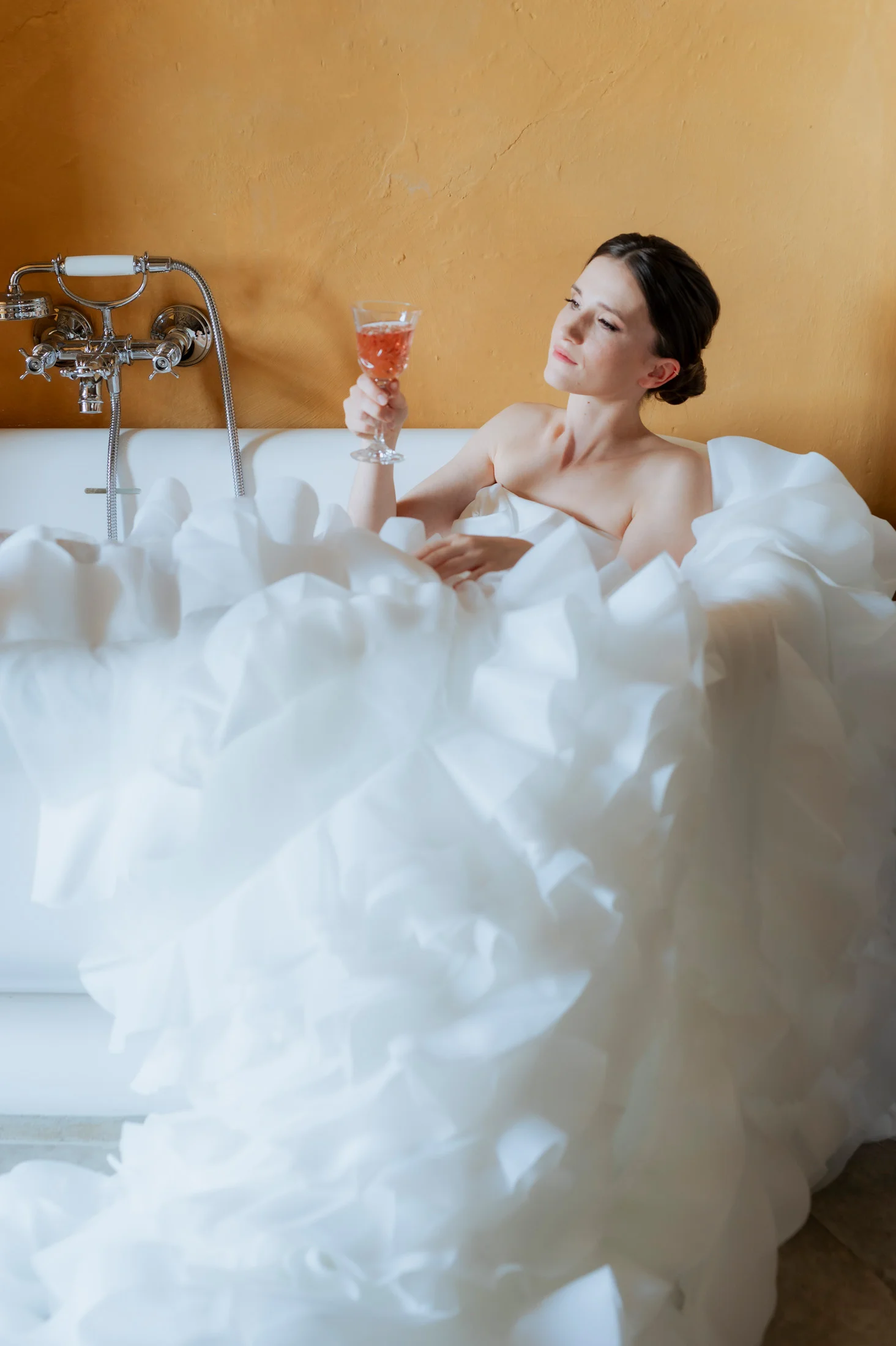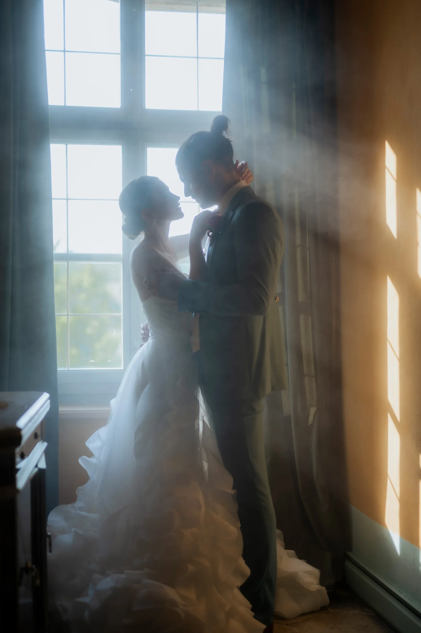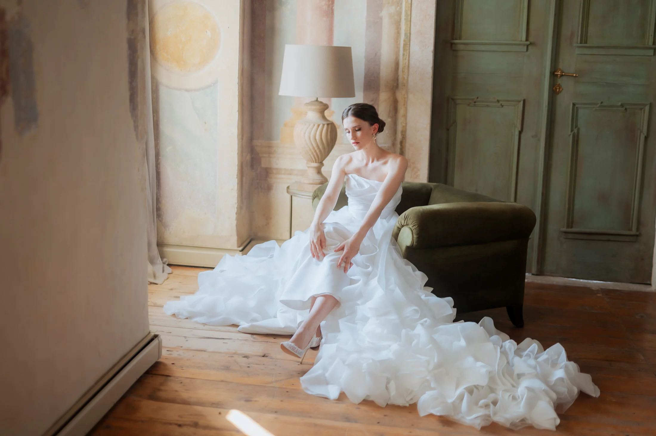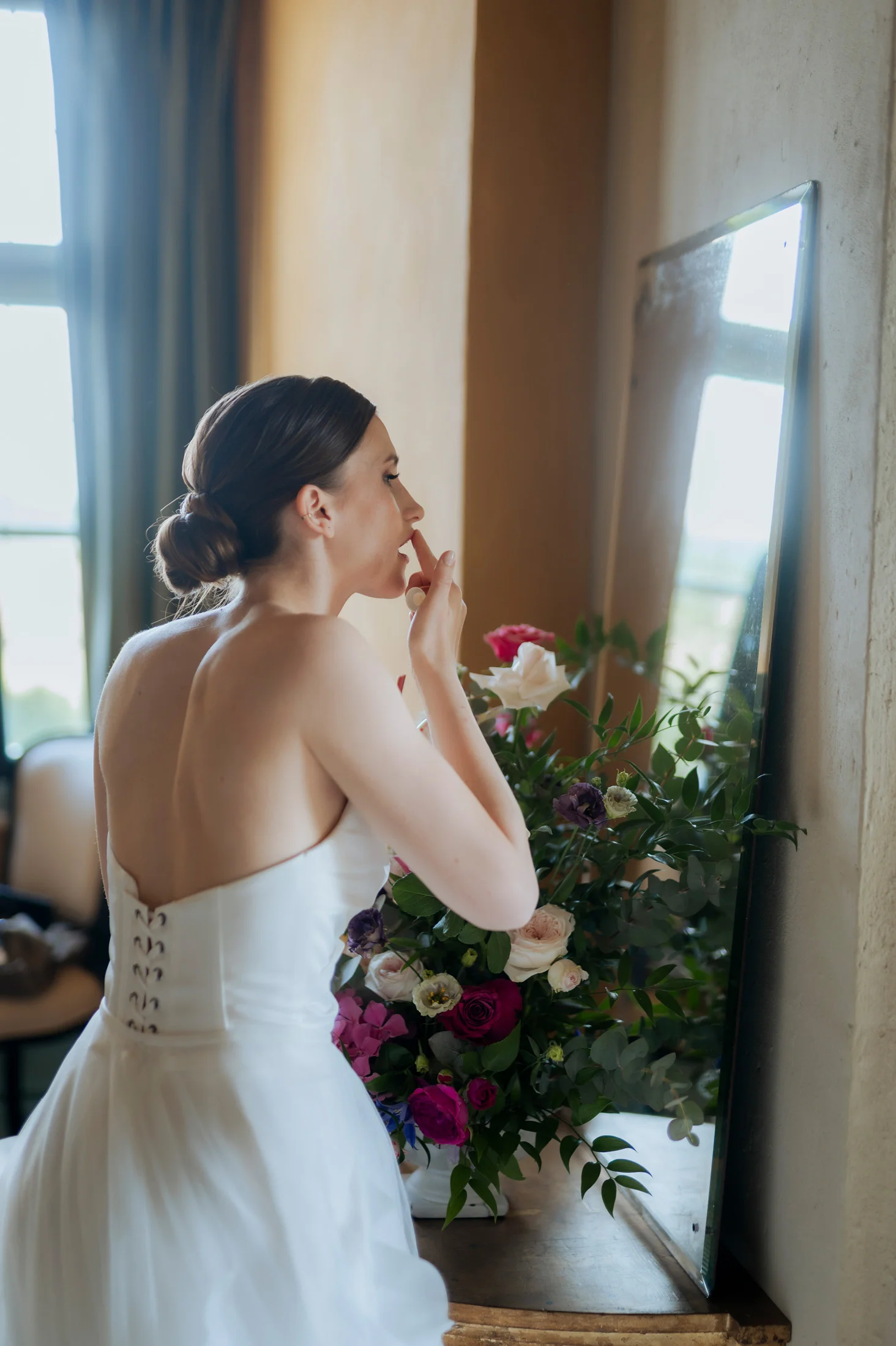 Das Brautkleid stammte aus dem Love Glow Concept, einem Atelier für hochwertige Brautmode. Der elegante, zeitlose Schnitt des Kleides harmonierte mit dem klassischen Stil des Schlosses und passte perfekt zum Gesamtkonzept. Die Braut strahlte in ihrem traumhaften Kleid, das in der historischen Kulisse des Schlosses besonders gut zur Geltung kam.