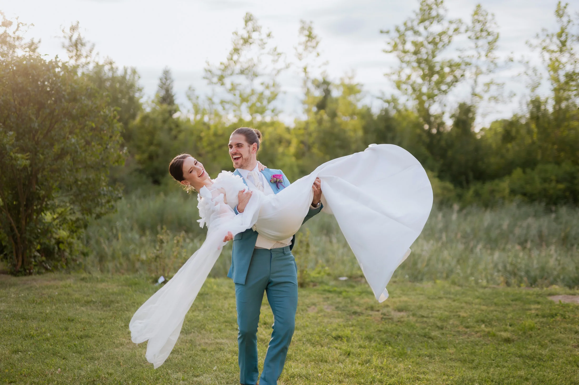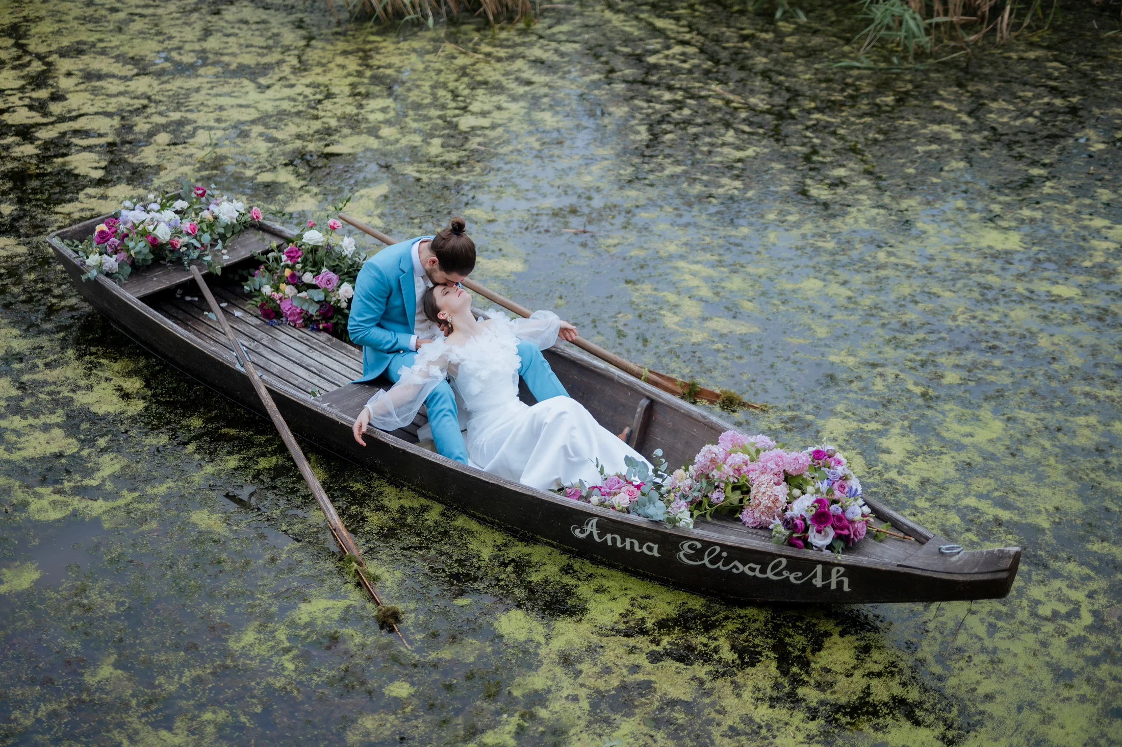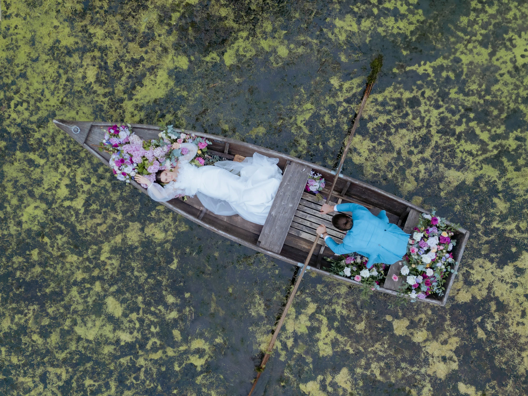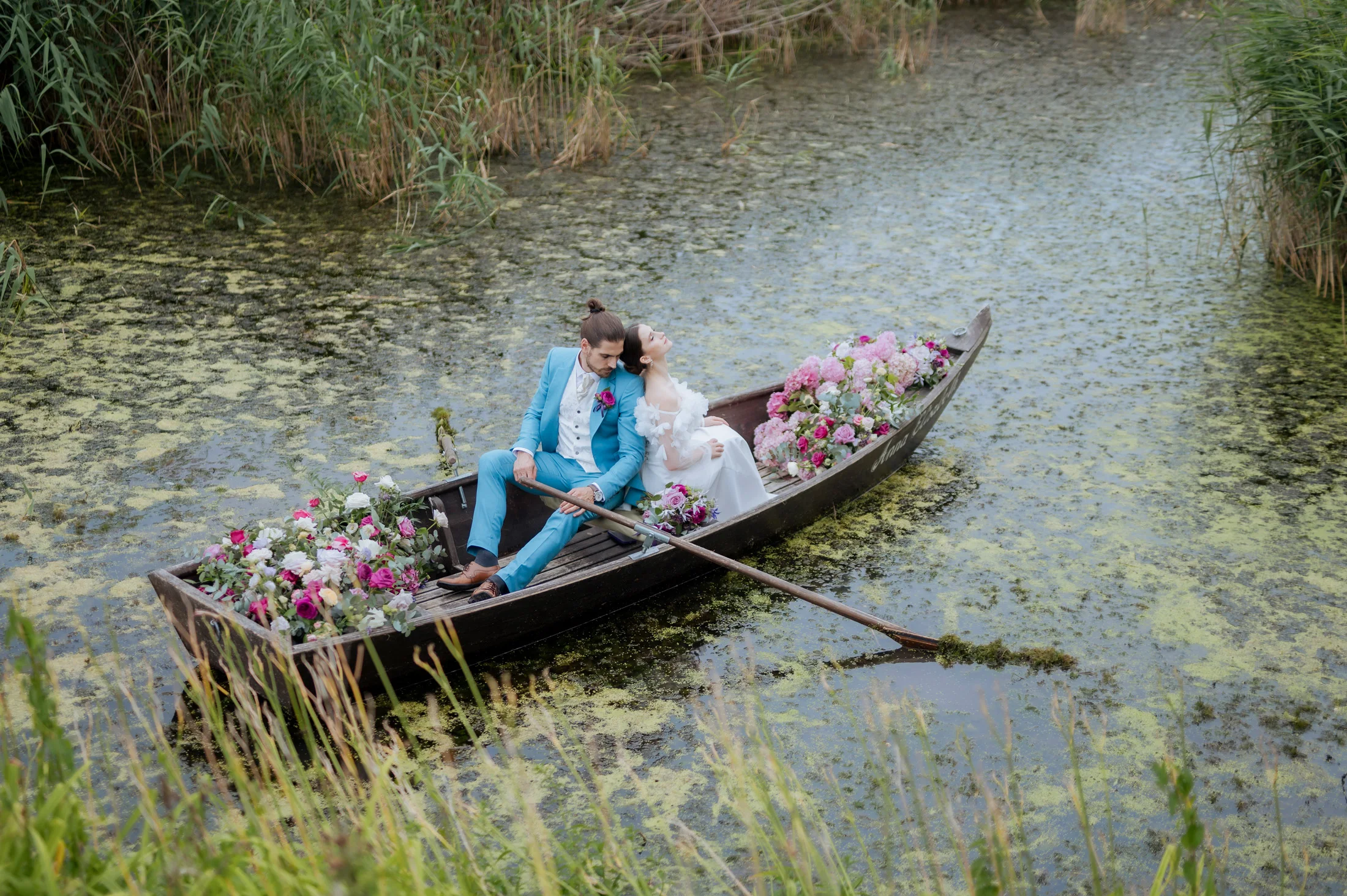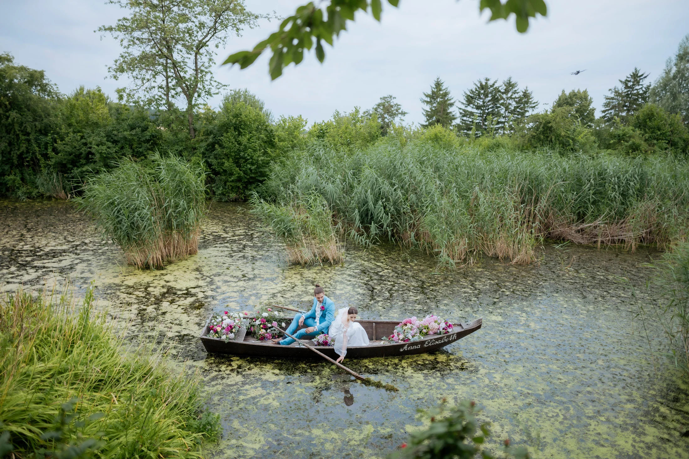 Zum Abschluss des besonderen Tages stiegen Braut und Bräutigam in ein Boot und genossen eine romantische Runde auf dem Wasser, während die untergehende Sonne eine zauberhafte Atmosphäre schuf. Ich hatte das Vergnügen, diesen einzigartigen Moment mit Drohnenaufnahmen festzuhalten, die die Freude und Romantik der beiden aus einer völlig neuen Perspektive einfangen.