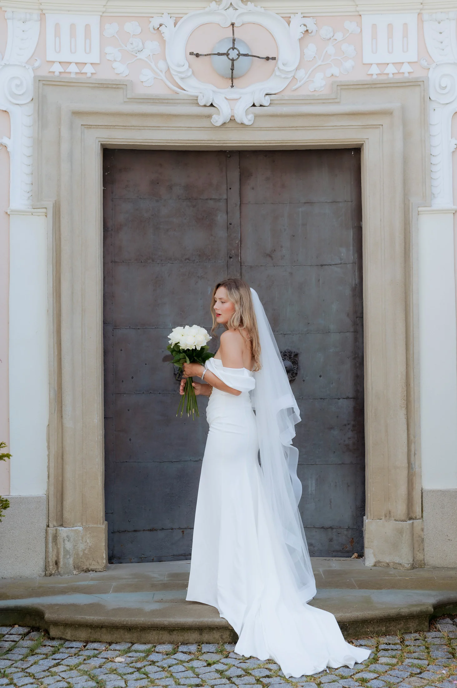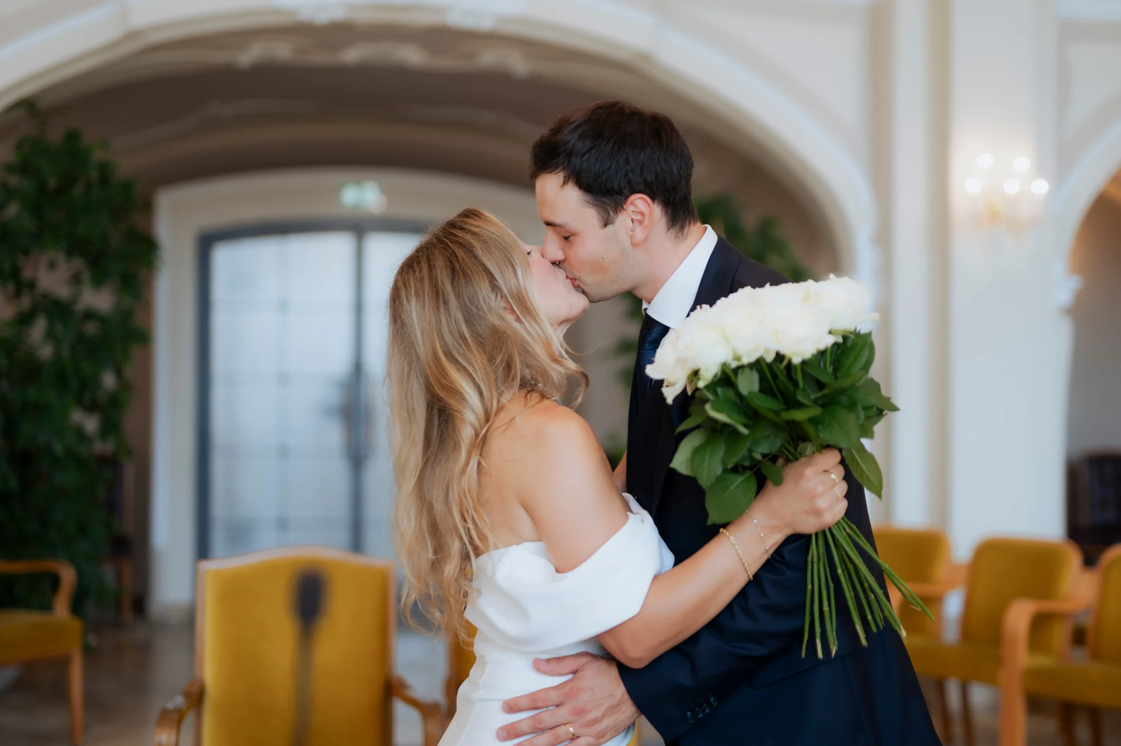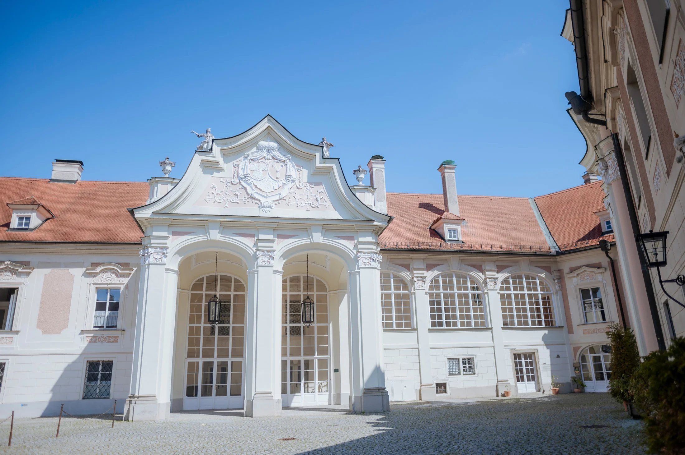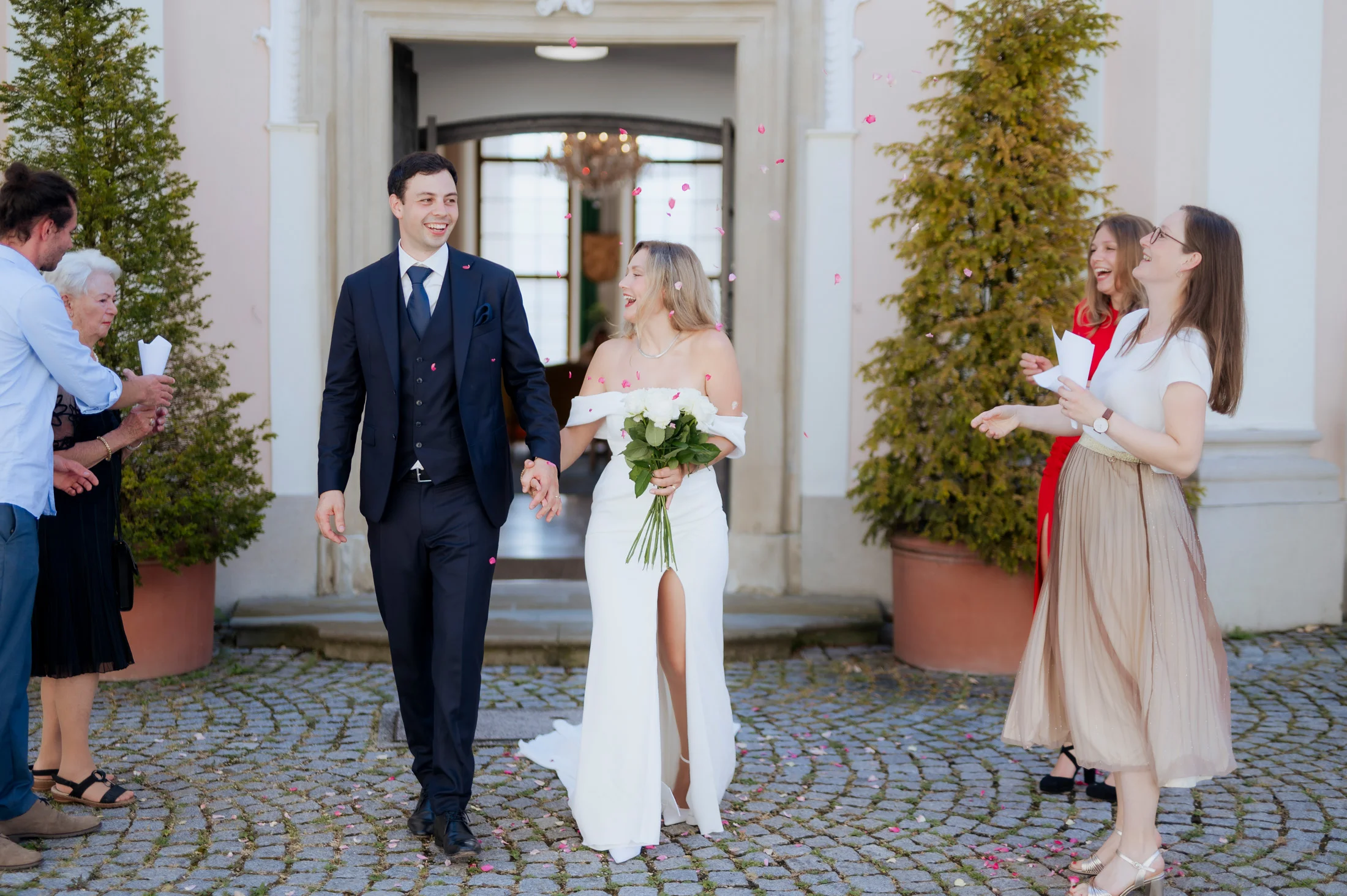 Das Schloss bot die perfekte Kulisse für ihre elegante und doch persönliche Feier. Mit einer kleinen Runde ihrer engsten Freunde und Familie reisten sie aus Tirol an, um diesen besonderen Ort zu genießen. Die historischen Mauern und der wunderschöne Innenhof des Schlosses verliehen der Hochzeit einen romantischen Charme, der zu den beiden perfekt passte.
