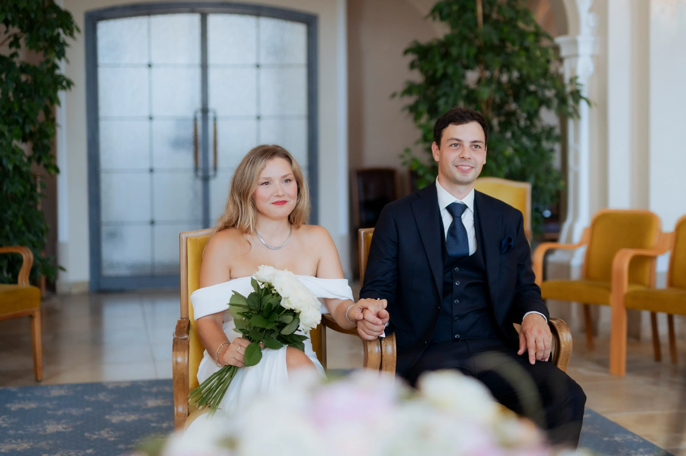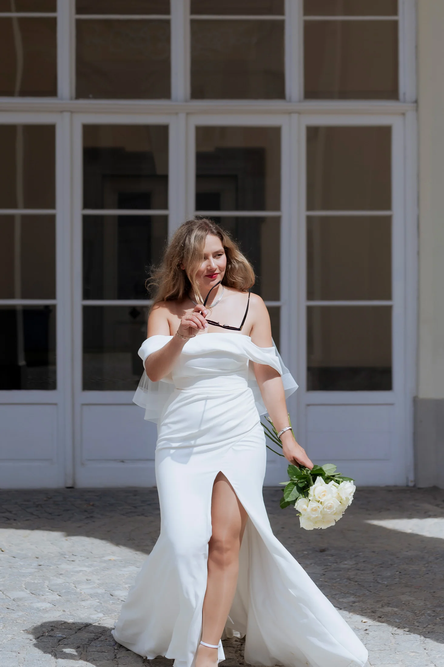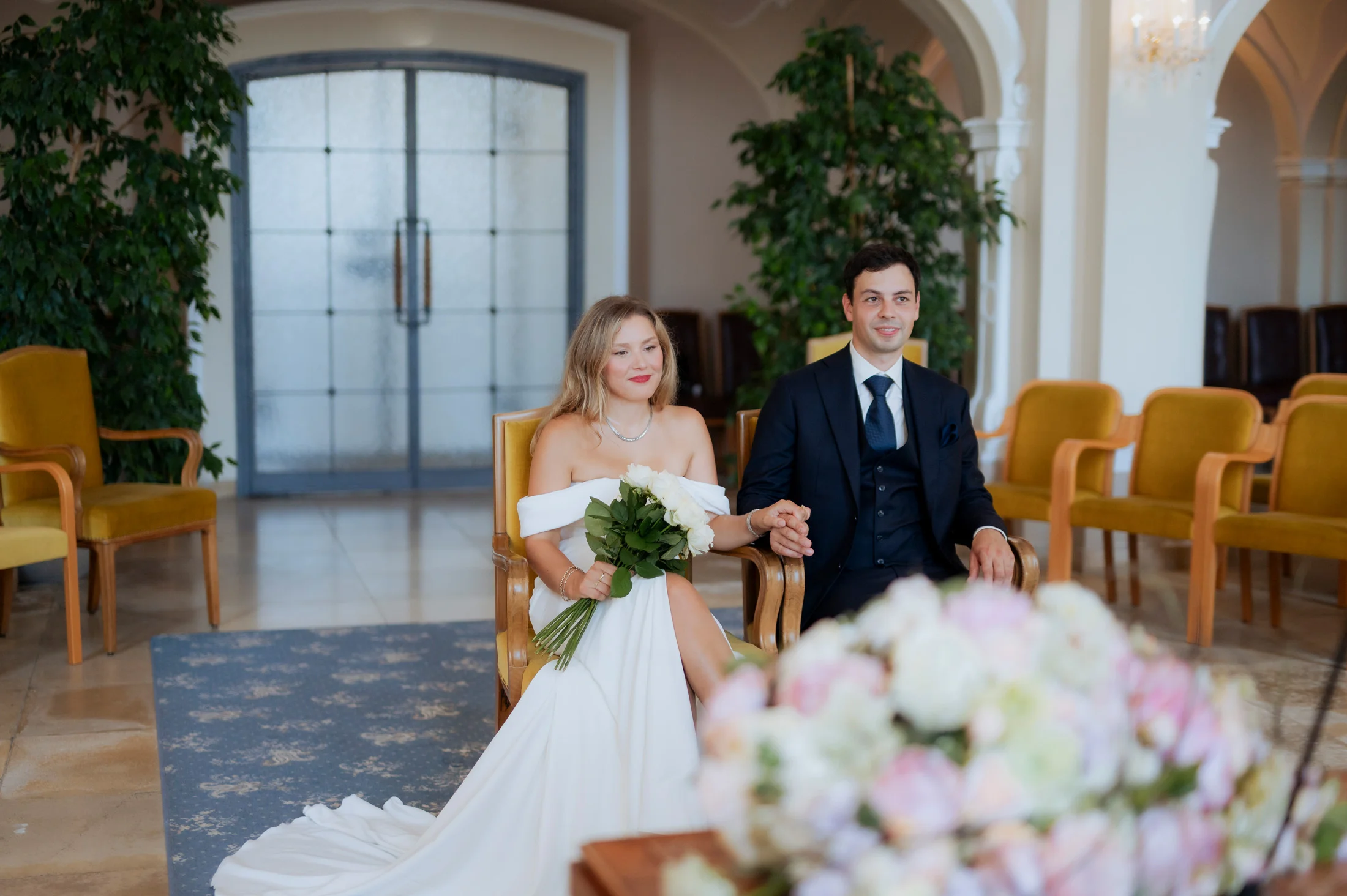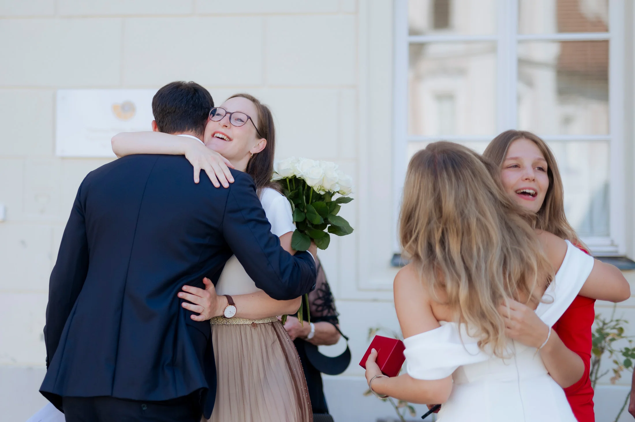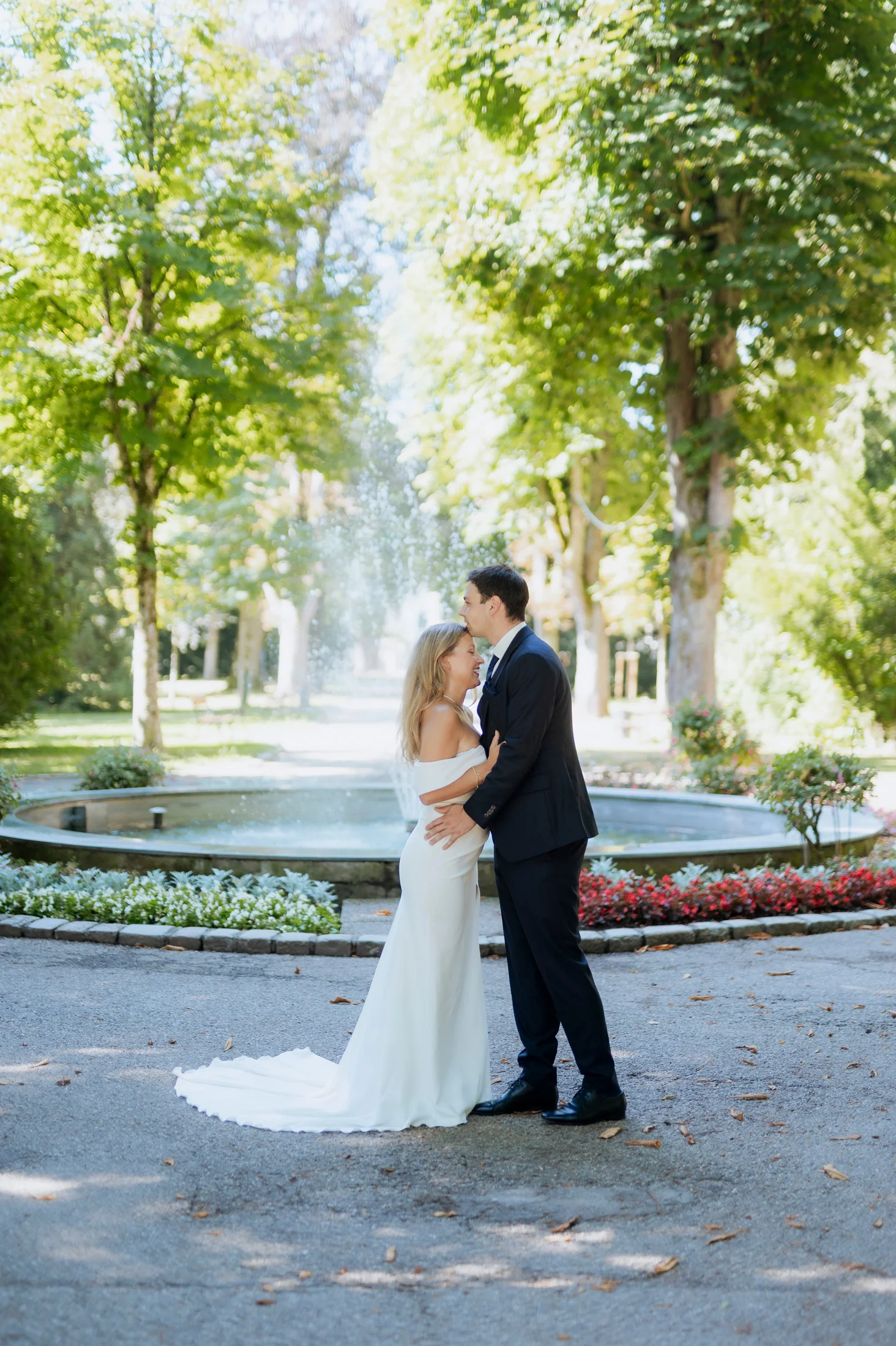 Das Schloss bot die perfekte Kulisse für ihre elegante und doch persönliche Feier. Mit einer kleinen Runde ihrer engsten Freunde und Familie reisten sie aus Tirol an, um diesen besonderen Ort zu genießen. Die historischen Mauern und der wunderschöne Innenhof des Schlosses verliehen der Hochzeit einen romantischen Charme, der zu den beiden perfekt passte.