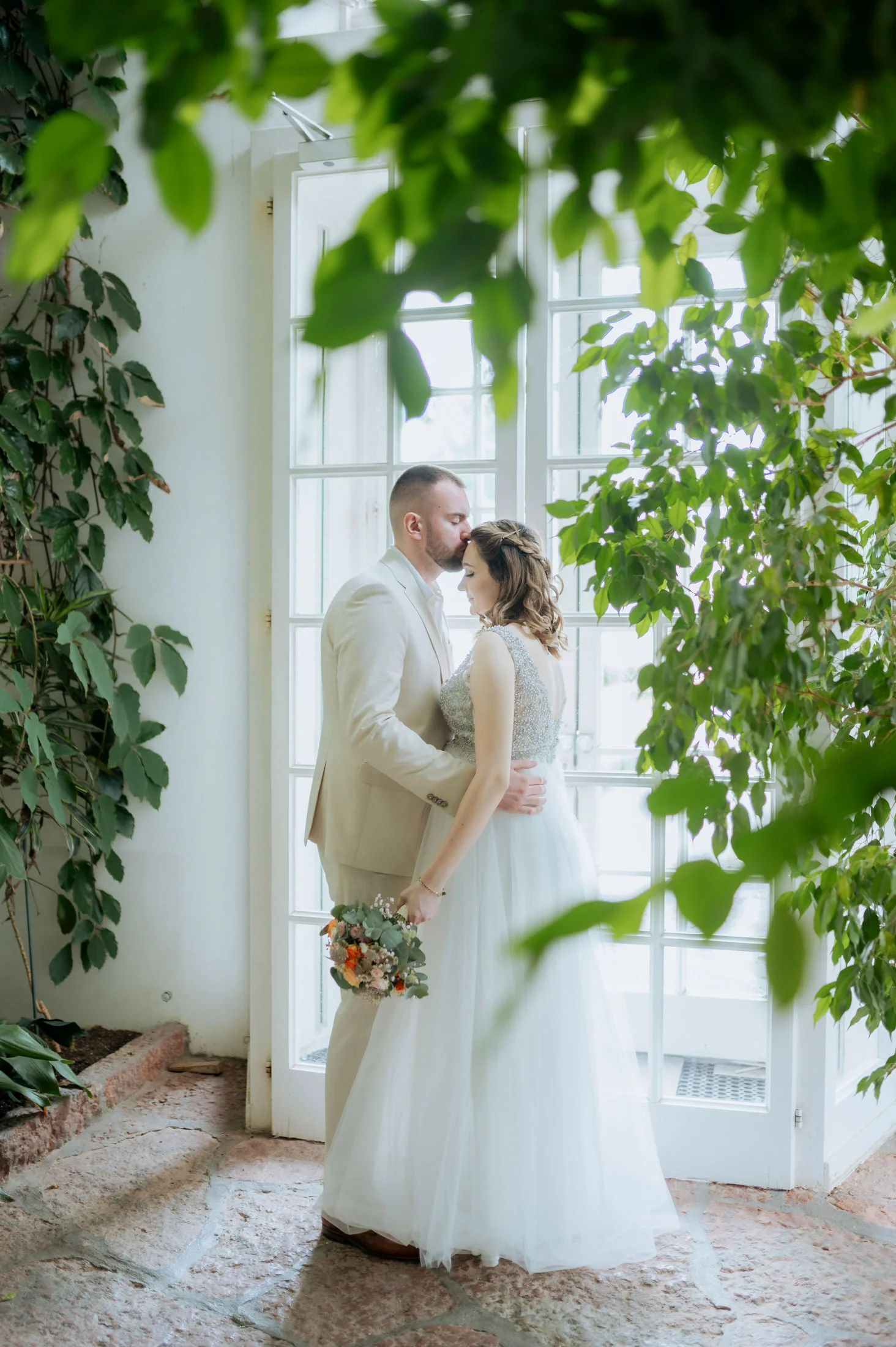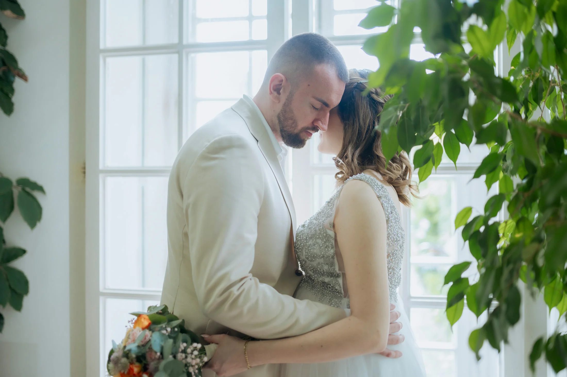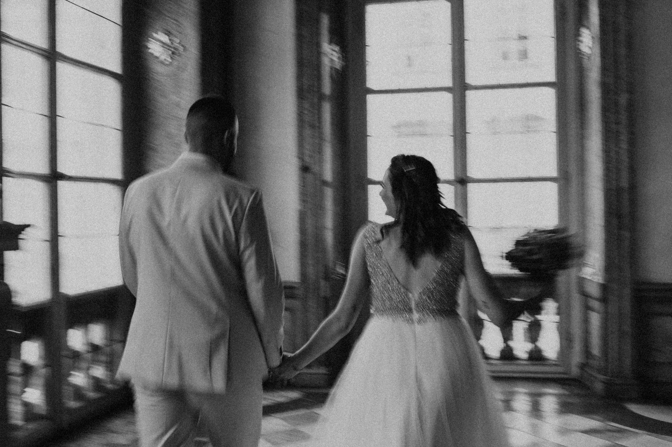 Selbst bei regnerischem Wetter bietet das Schloss unzählige Möglichkeiten für stimmungsvolle Fotos und intime Momente. Die Gänge und Säle strahlen eine zeitlose Eleganz aus, die selbst kleineren Hochzeitsgesellschaften wie bei Anita und Perica das Gefühl gibt, etwas ganz Großes zu feiern.