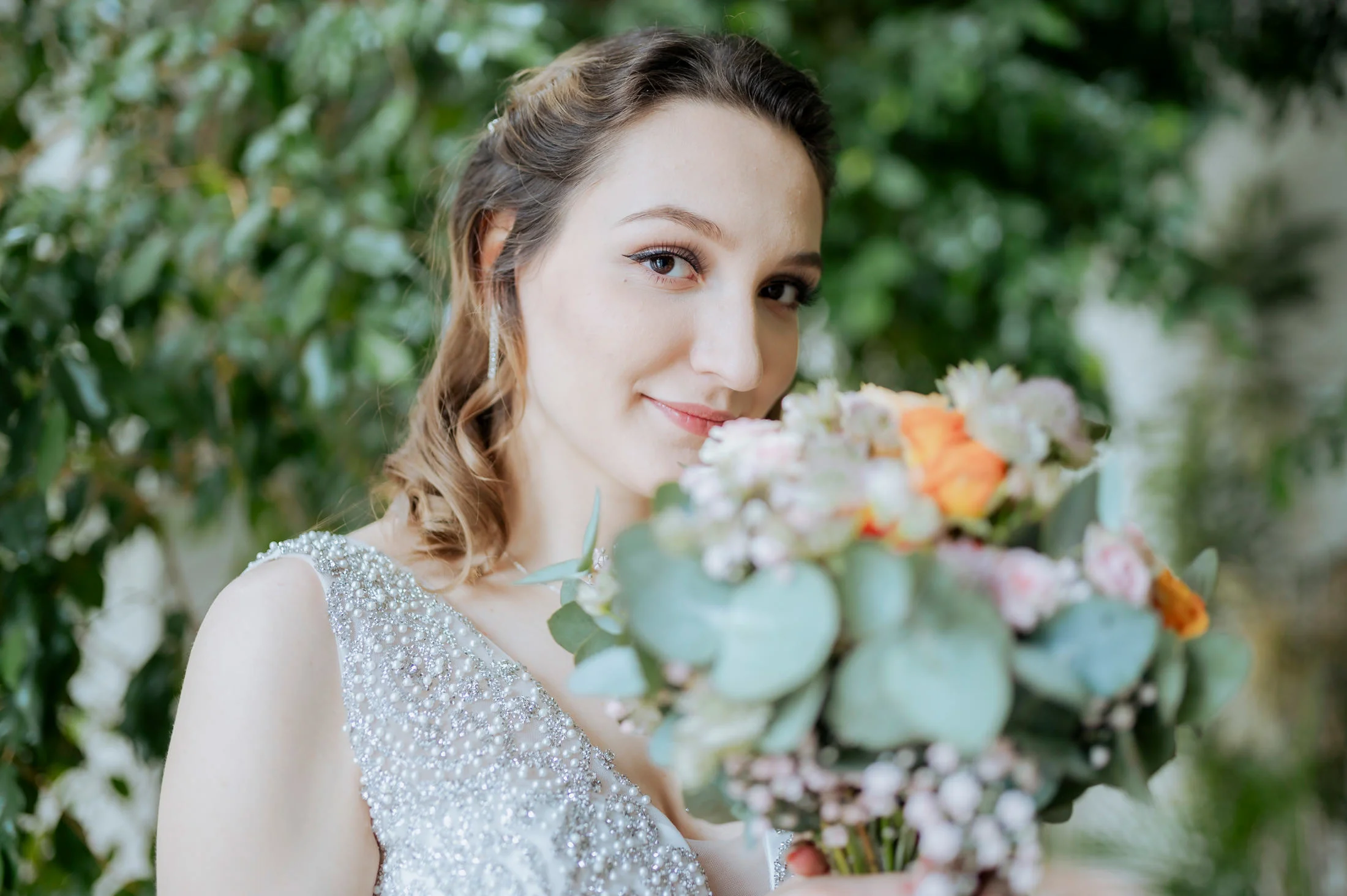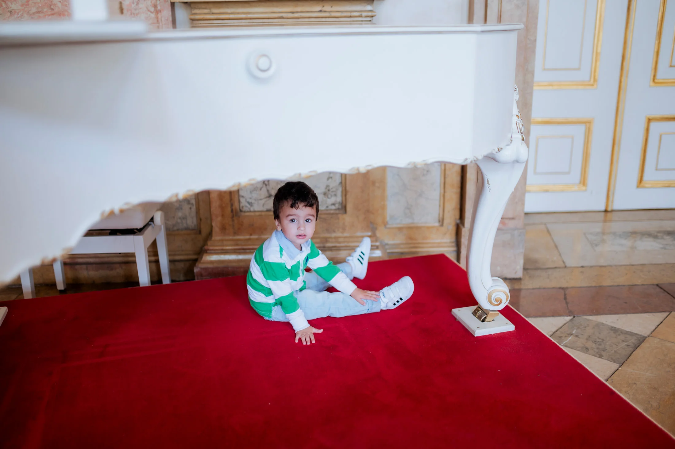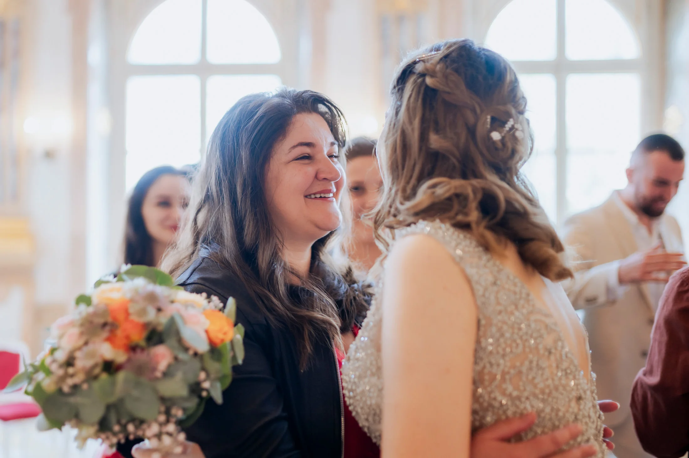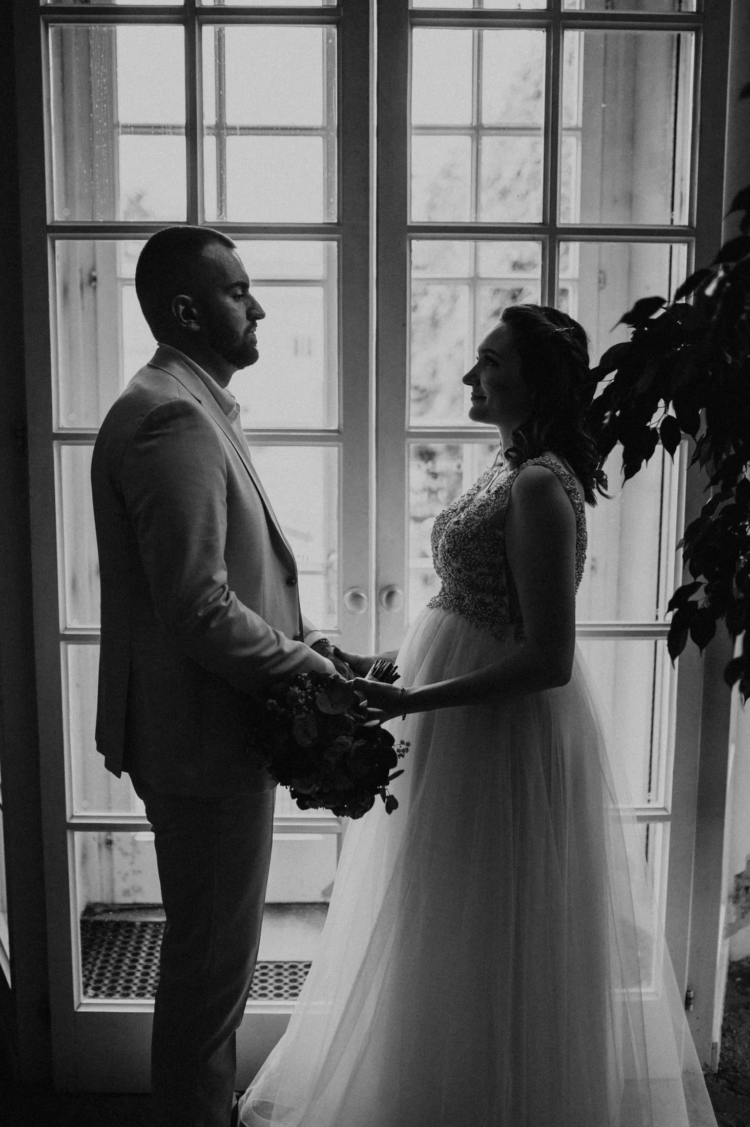 Selbst bei regnerischem Wetter bietet das Schloss unzählige Möglichkeiten für stimmungsvolle Fotos und intime Momente. Die Gänge und Säle strahlen eine zeitlose Eleganz aus, die selbst kleineren Hochzeitsgesellschaften wie bei Anita und Perica das Gefühl gibt, etwas ganz Großes zu feiern.
