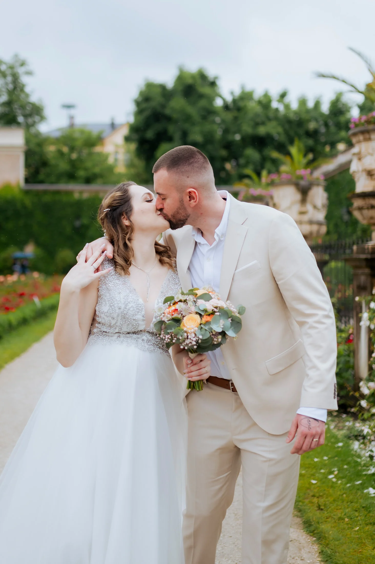 Hochzeit im Schloss Mirabell. Das Schloss Mirabell in Salzburg ist ein Ort, der wie kein anderer für romantische Hochzeiten geschaffen wurde. Seine reiche Geschichte und die prachtvolle Architektur machen es zu einer der beliebtesten Hochzeitslocations in Österreich. Anita und Perica entschieden sich für diesen besonderen Ort, um sich an einem regnerischen Sommertag das Ja-Wort zu geben. Ihre Hochzeit war ein wunderschönes, intimes Ereignis mit etwa 15 Gästen, bei dem die Liebe und Nähe zu ihren Liebsten im Vordergrund stand.