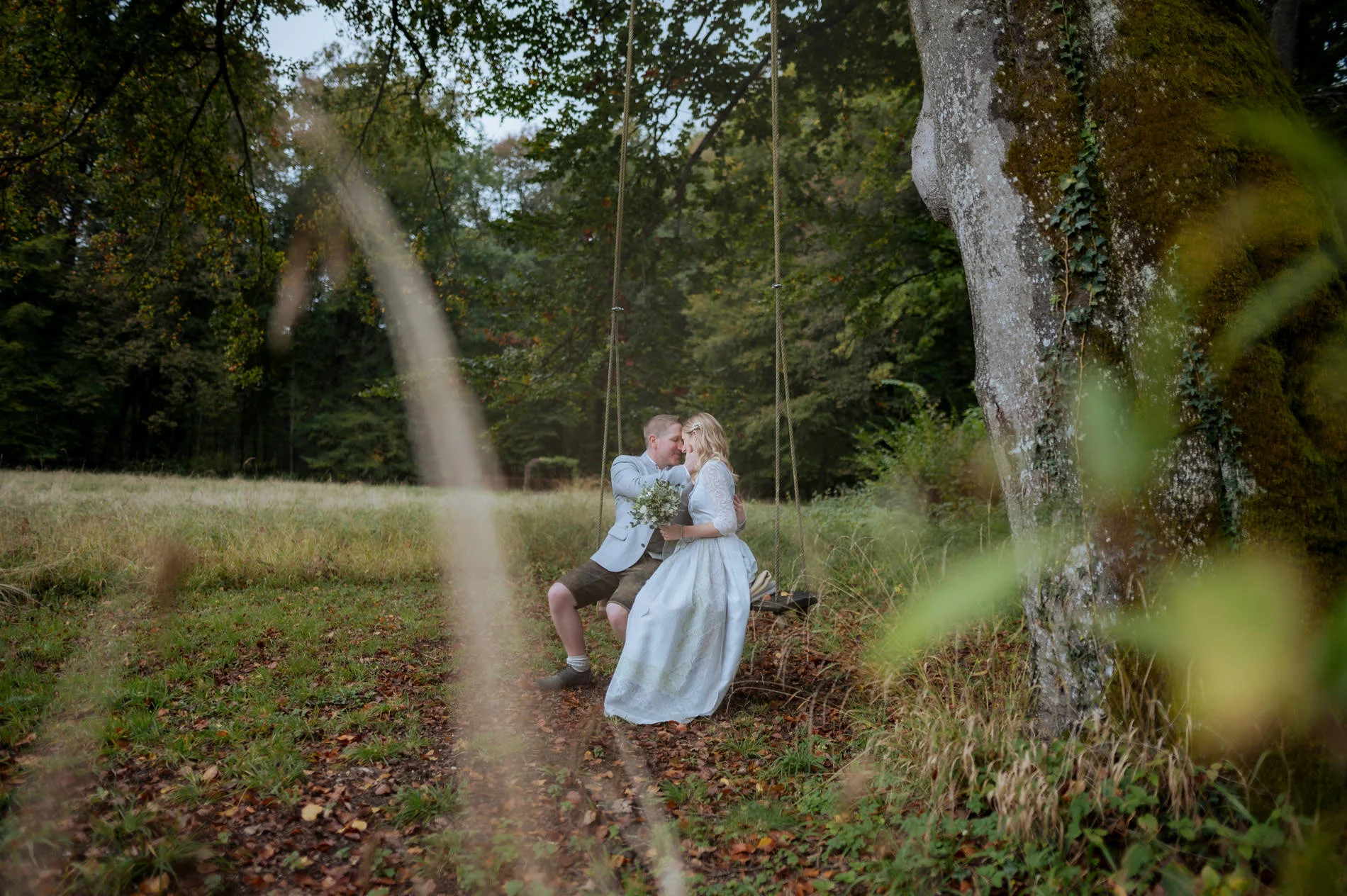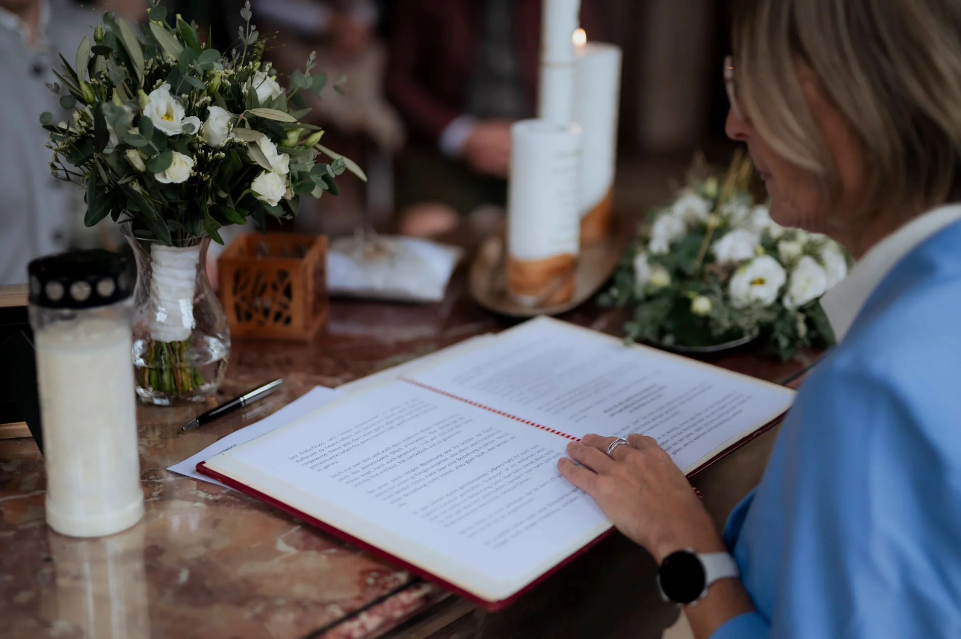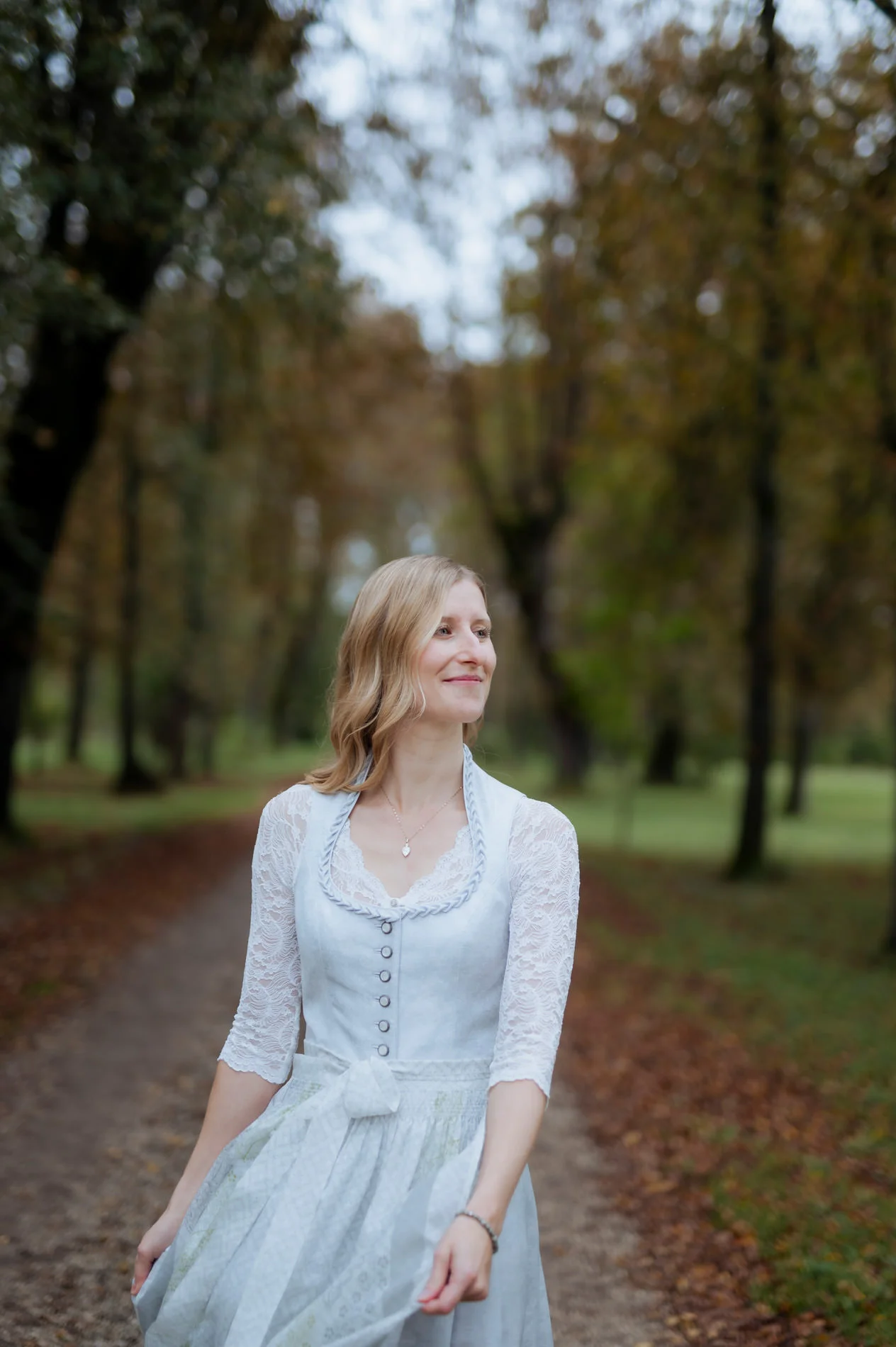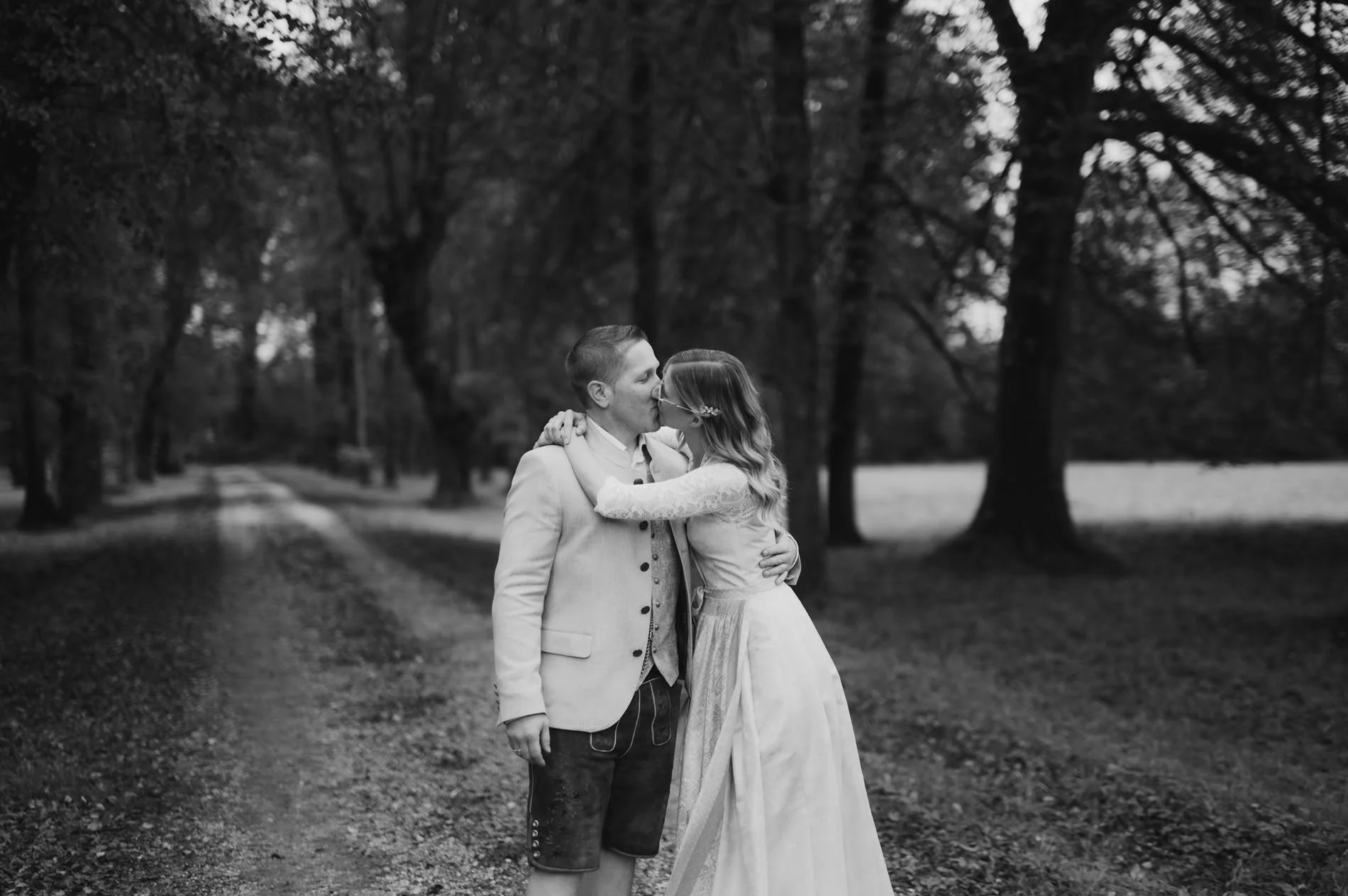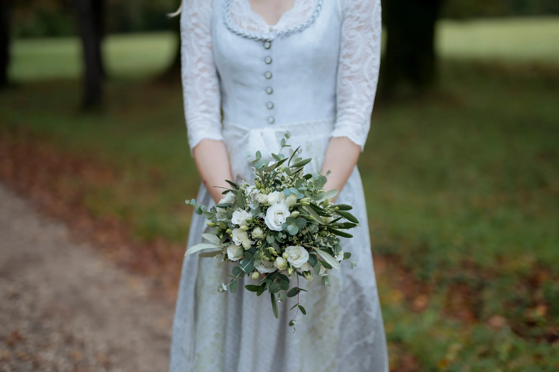 Die Zeremonie begann am späten Vormittag und fand bei mildem Oktoberwetter im Außenbereich des Schlosses statt. Alexandra und Alexander wurden von Freunden und Familie umgeben, während sie ihre Gelübde unter den bunten Herbstbäumen ablegten. Die Farben der Blätter und die sanfte Oktobersonne verliehen dem Moment eine besondere Atmosphäre. Die Fotomotive auf Schloss Neuwartenburg waren vielseitig und spiegelten perfekt die herbstliche Stimmung wider.