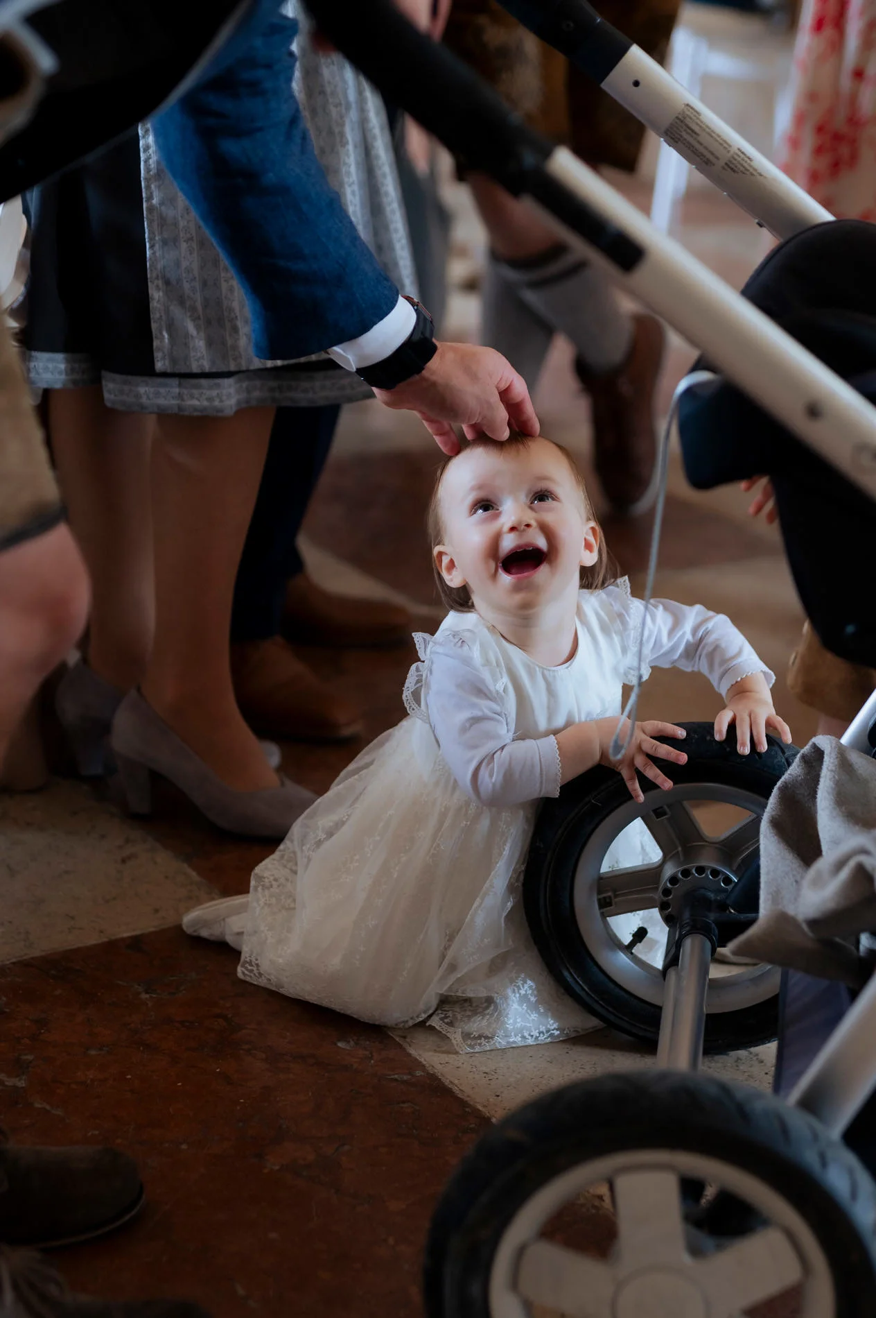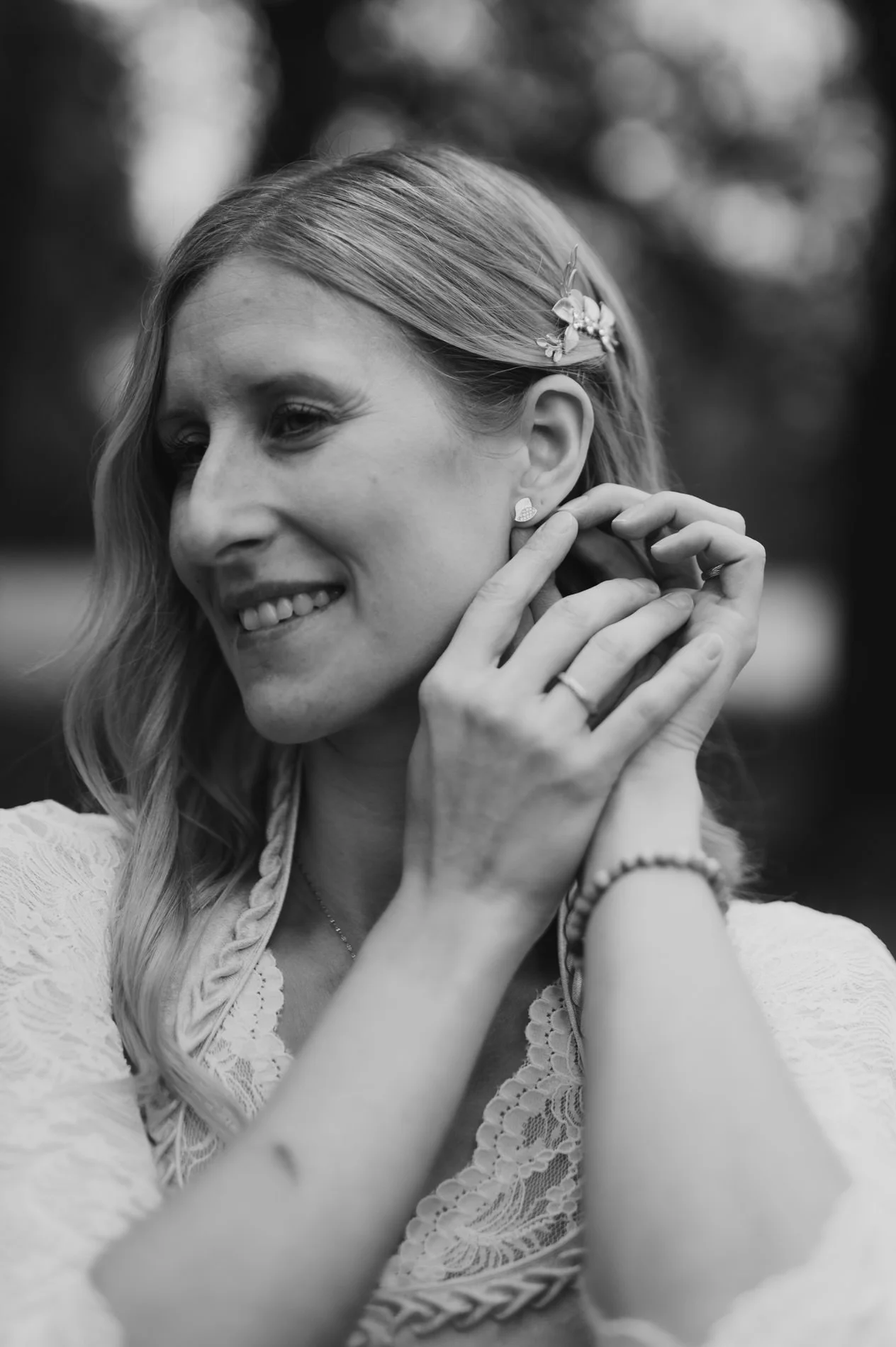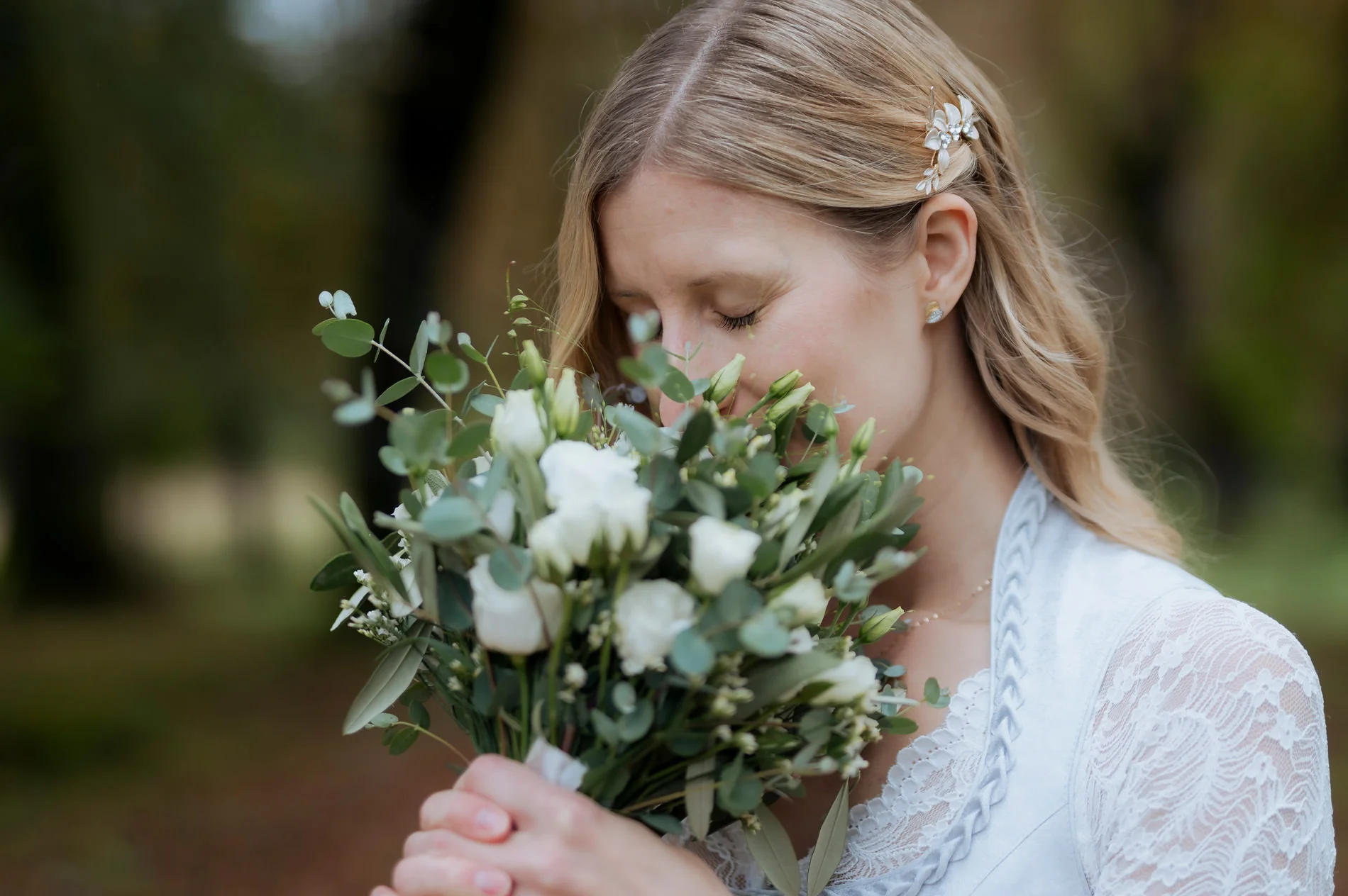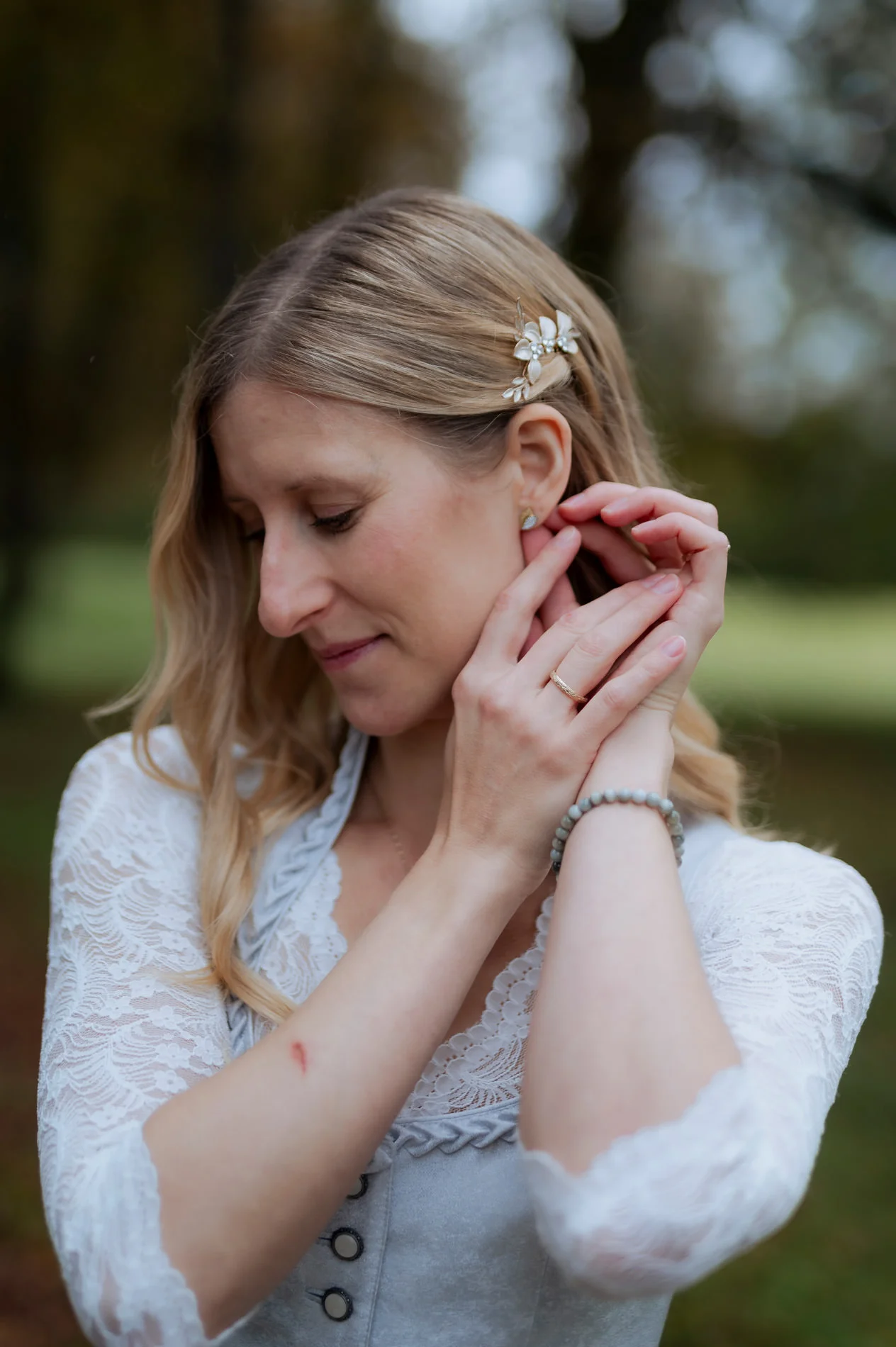 Die Zeremonie begann am späten Vormittag und fand bei mildem Oktoberwetter im Außenbereich des Schlosses statt. Alexandra und Alexander wurden von Freunden und Familie umgeben, während sie ihre Gelübde unter den bunten Herbstbäumen ablegten. Die Farben der Blätter und die sanfte Oktobersonne verliehen dem Moment eine besondere Atmosphäre. Die Fotomotive auf Schloss Neuwartenburg waren vielseitig und spiegelten perfekt die herbstliche Stimmung wider.