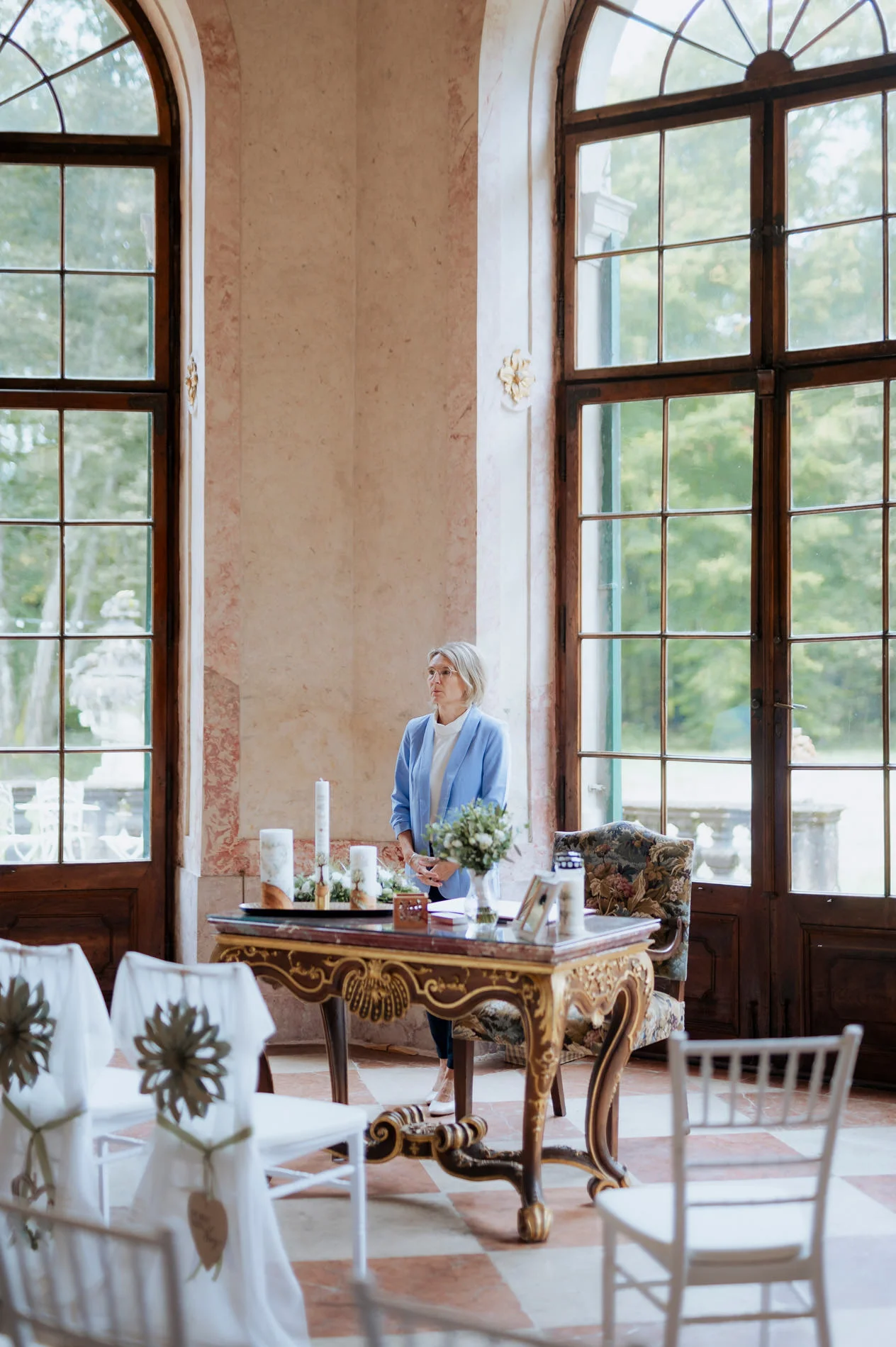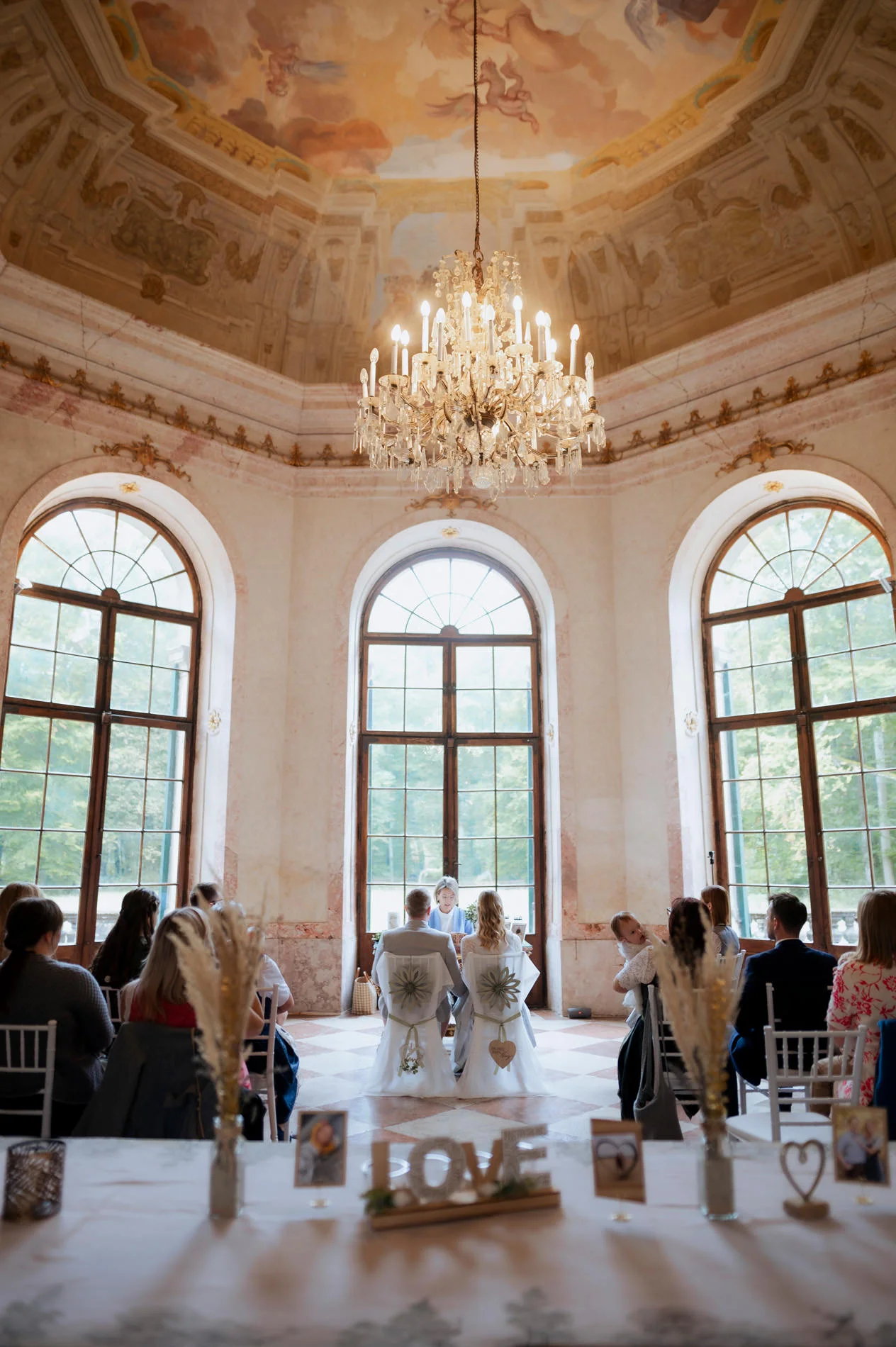 Die Hochzeitslocation liegt inmitten einer traumhaften Parklandschaft und bietet Paaren eine einzigartige, historische Kulisse für ihren großen Tag. Alexandra und Alexander wählten diese Hochzeitslocation nicht nur wegen ihrer Eleganz und Geschichte, sondern auch wegen des warmen und romantischen Ambientes, das das Schloss ausstrahlt. Die alten Mauern, die großzügigen Säle und die malerischen Außenbereiche machen das Schloss zu einem idealen Ort für eine Hochzeit, die in Erinnerung bleibt.