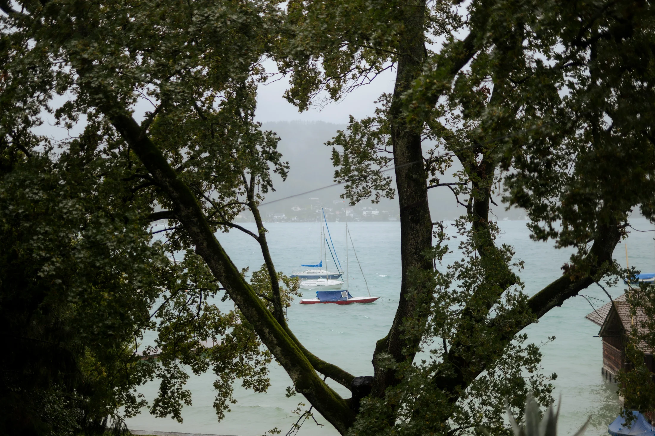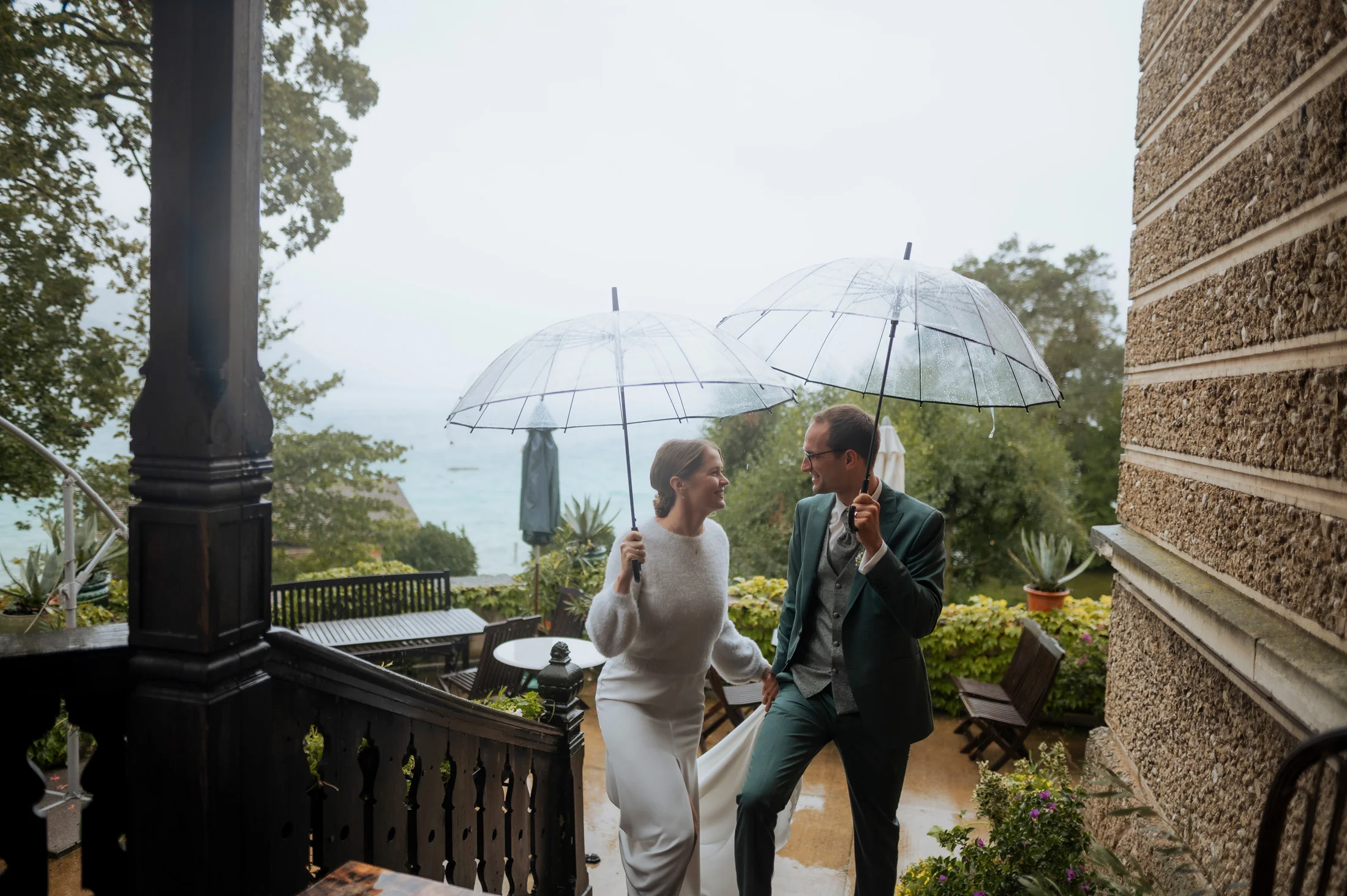 Eine Hochzeit am Attersee hat einen ganz besonderen Charme, selbst wenn der Himmel voller Wolken hängt. Der Regen verwandelte die Umgebung der Villa in eine mystische Kulisse, die den Momenten von Julie und Markus eine ganz eigene Magie verlieh.